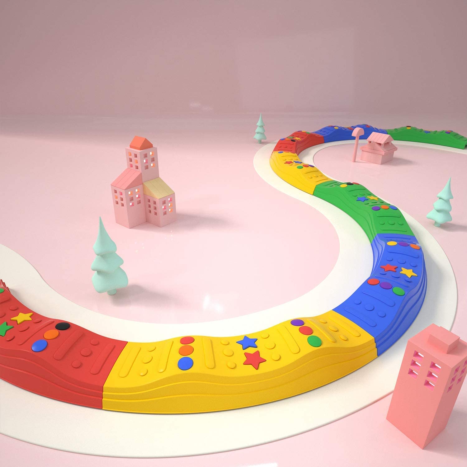 Mocuteen Kids Balance Beam Toddler Stepping Stones Max Load 220Lbs 8 Pcs Non-Slip Textured Surface & Rubber Pads Bottom Promote Agility Coordination Five Star Pattern