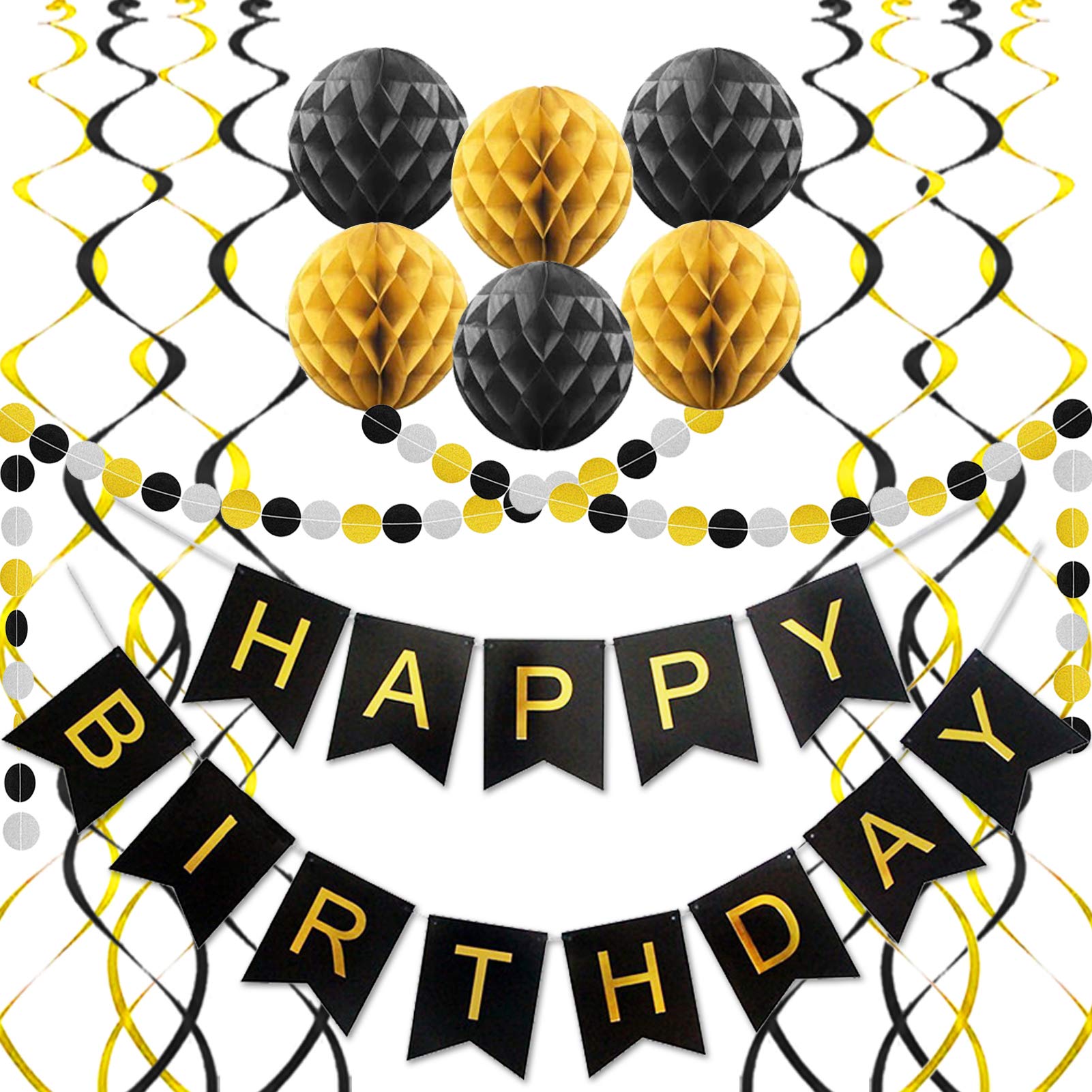 - Q: What items are included in the birthday decoration set? A: The set includes 1 Happy Birthday banner, 6 paper honeycomb balls, 1 colorful circle paper garland, and 8 metallic swirls, providing a complete decoration solution for your party.