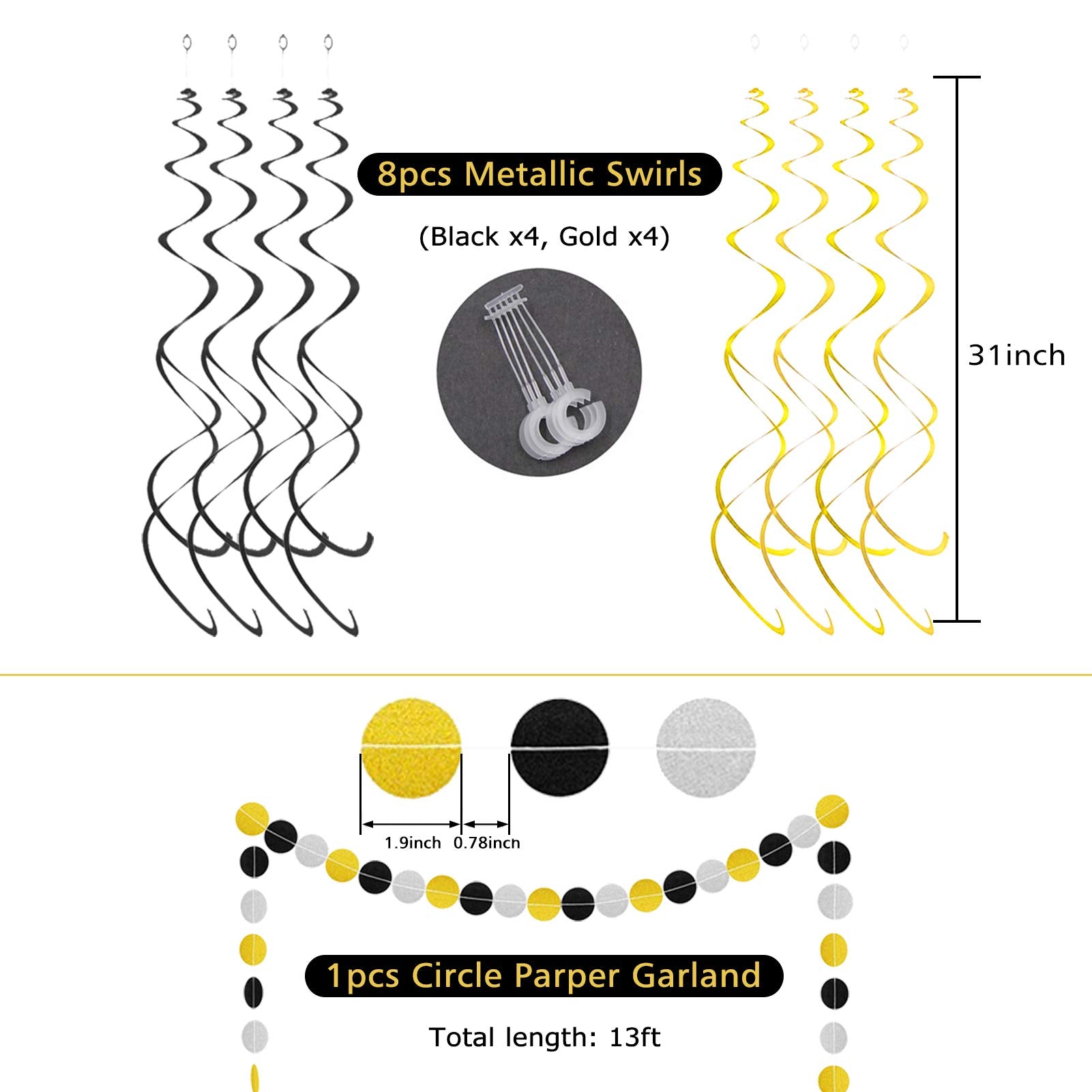 Specification Material: Paper Durable & Reusable Perfect For Birthday Party Birthday Banner Card Size: 6’’ X 7.6’’ Paper Honeycomb Diameter: 5.9’’ Happy Birthday Banner Lengh: 118''/10 Ft Circle Paper Garland Length: 13Ft Metallic Swirls Length: 31''(After Hanging) Package Includes: 1 X Happy Birthday Banner 6 X Paper Honeycomb Balls 1 X Colorful Circle Paper Garland 8 X Metallic Swirls