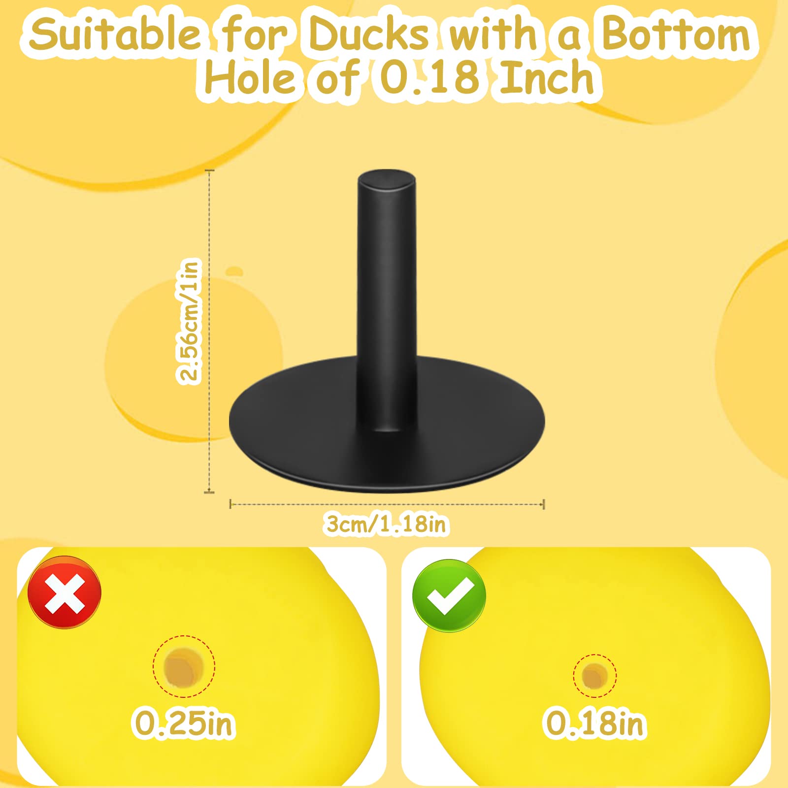 - Q: What size rubber ducks are compatible with this holder? A: This duck holder is suitable for rubber ducks that have a bottom hole diameter of 0.18 inches. It is not compatible with ducks that have a 0.25-inch hole.