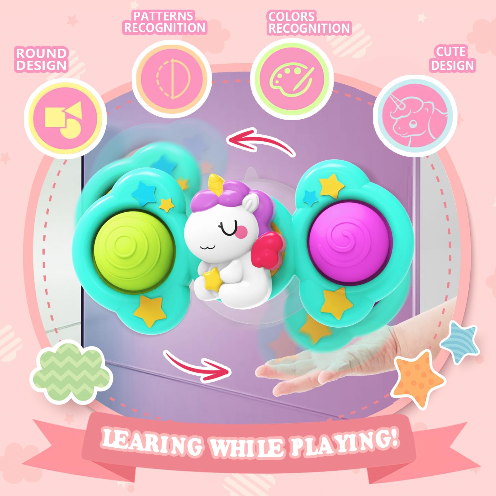 3Pcs Suction Cup Spinner Toys For 1 Year Old Girls Boys, Baby Bath Toys,Spinners For Kids Sensory Toys For Toddlers 1-3,Toddler