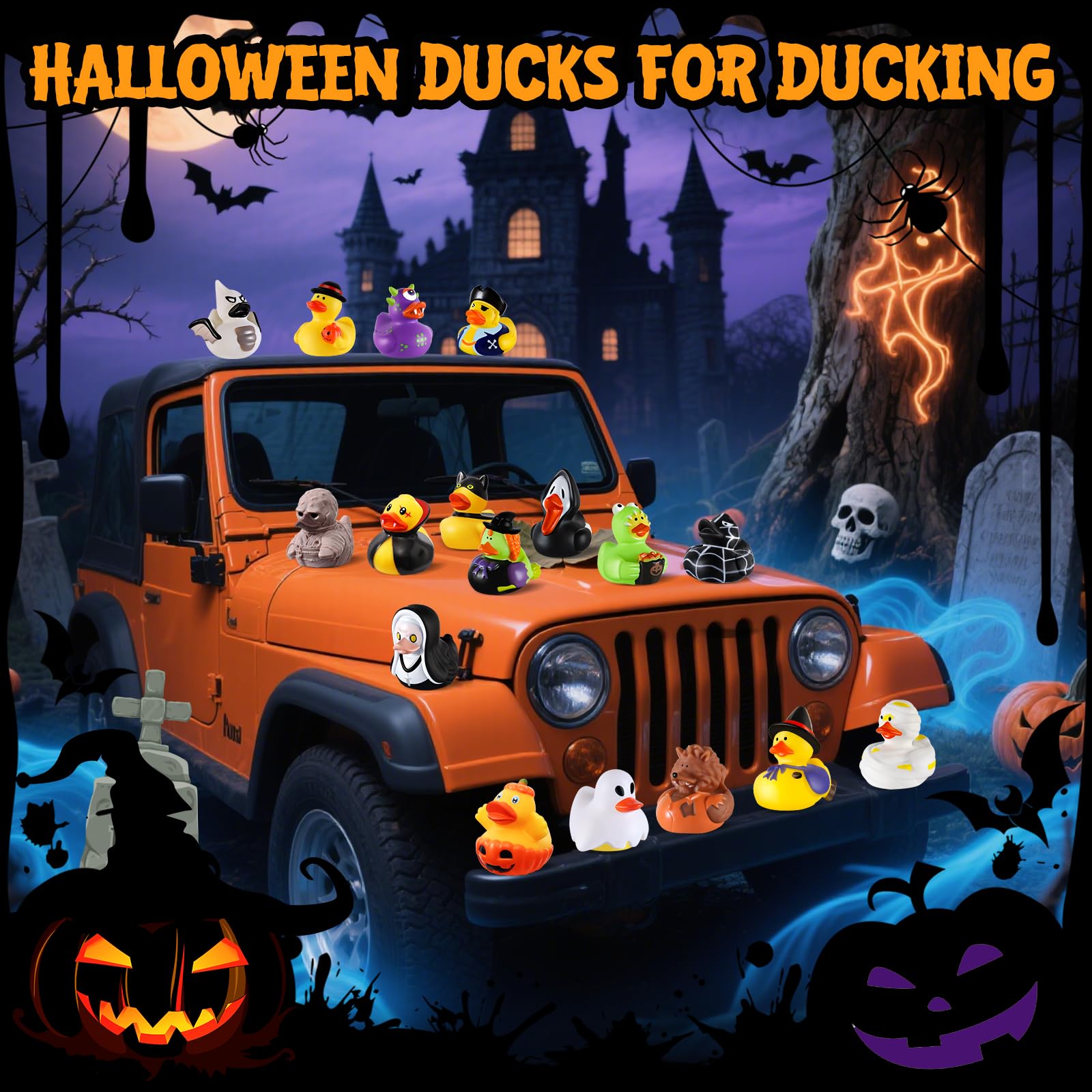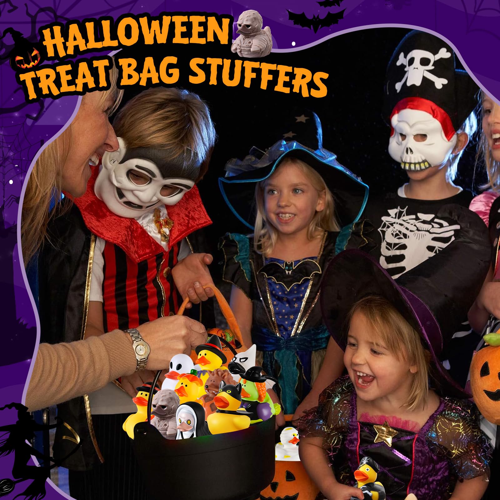 48 PCS Halloween Rubber Ducks with Bag Bulk Halloween Ducks Toys for Jeeps Ducking Party Favors Goodie Bag Stuffers Horror Ducks for Halloween Non Candy Prizes Bath Toys Gifts for Kids