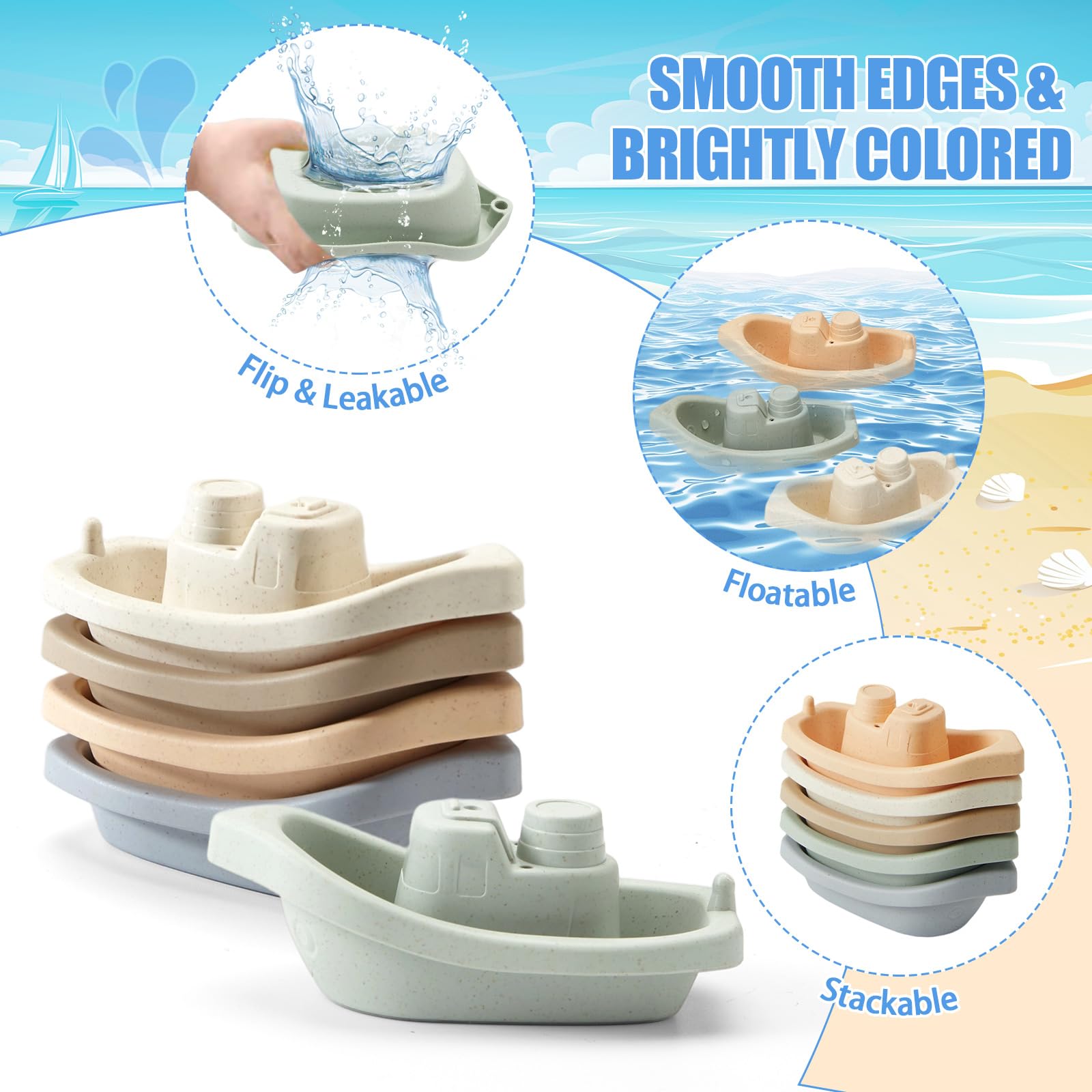 11PCS Baby Bath Toys: Our bath toys come with 6pcs bath spoons and 5pcs floating boats all toddler bath toys with bright colors that always attract baby's attention and promote visual development.Stacking toys also help kids learn language and fine motor skills Safe Material: All mold free bath toys are used ABS and wheat straw material which can withstand rough play and tossing. All of these kids bath toys have a smooth touch no burrs on the edges and will not scratch the baby's skin. The holes at the bottom of the toy are designed to allow water to drain properly and their size ensures that they will not pose a risk of trapping the baby's fingers Educational Bath Toys: The boat toys and bath spoons have various ways to play: stack connect scoop and pour water. Each spoon of these bath toys for babies have a different number and holes on the back which can enhance children concepts about numbers sizes and sequences also improve the baby's concentration and hand-eye coordination ability Easy to Clean: All bath toys for toddlers are single-piece structures which means they're very easy to clean. After the baby finishes playing just place them in a well-ventilated area to dry until the next aquatic adventure Best Gift for Babies: These bath toys for kids are not only suitable for the bathtub toys but also can be used as water toys toddler pool toys and beach toys and comes with exquisite package which can be the best gift for your baby's birthday Children's Day or Christmas. It is highly recommended for parents who want their babies to enjoy a happy bath time while also allowing them to learn early education