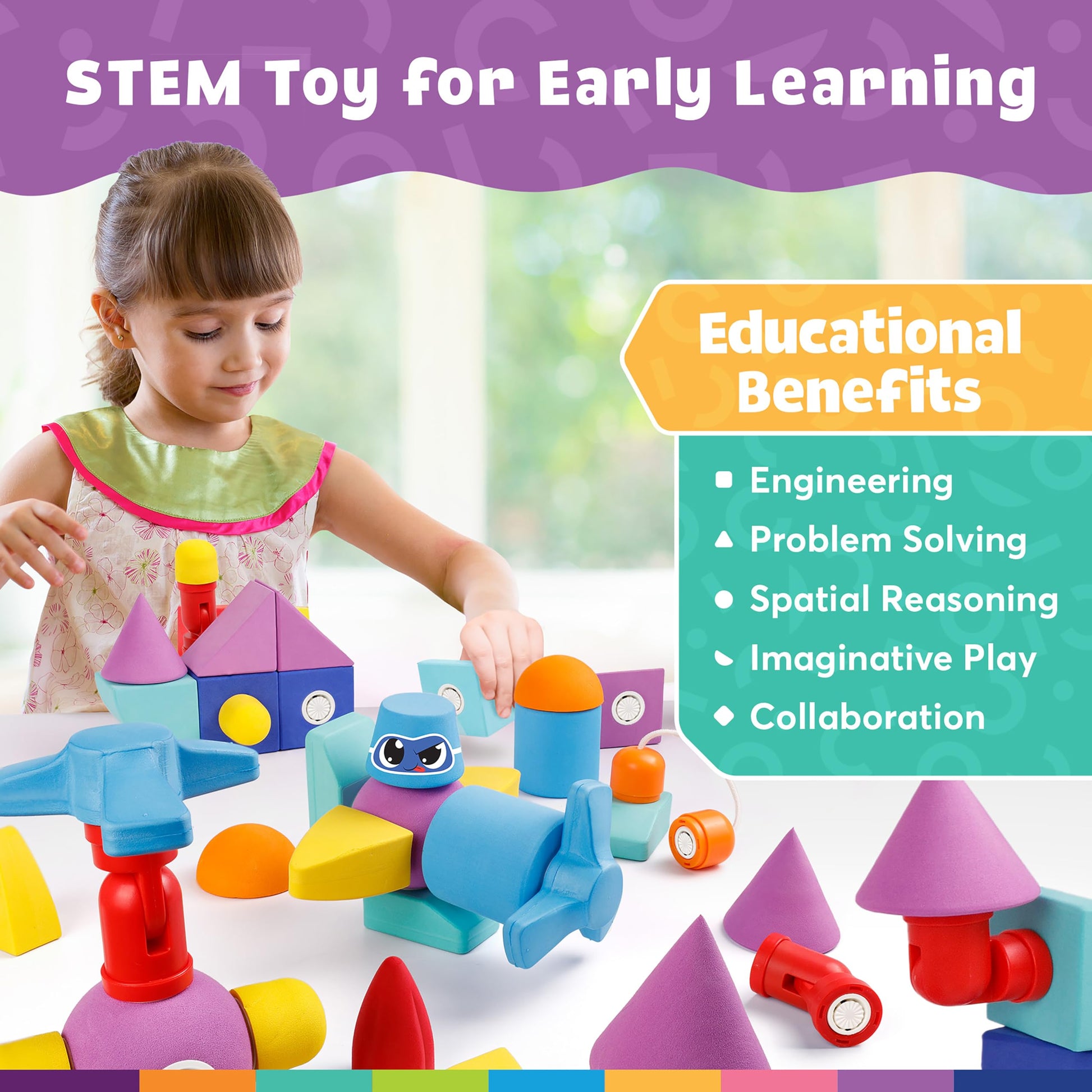 50-Piece Set With Storage Trunk - Perfect For Preschool Learning, Montessori Classrooms, And Families! Blockaroo Foam Magnetic Blocks Click Together Easily, Rotate 360°, And Always Attract To Each Other For A Sensory Experience Kids Love! | Patented Magnetic System - Blockaroo Building Blocks Are The Perfect Way To Introduce Your Child To Early-Learning Stem Toys. Preschoolers Can Explore Shapes, Colors, And Frustration-Free Stacking With These Safe, Easy-To-Handle Magnetic Foam Blocks! | Build Awesome Bath Toys - Blockaroo Blocks Are A Fun, Frustration-Free Way To Build. Our Patented Foam Magnetic Blocks Click Together Like Magic, Rotate 360-Degrees, And Always Attract To Each Other, Creating A Multi-Sensory Experience Kids Love! | Award-Winning, Educational Fun - Blockaroo Blocks Have Won Several Awards For Their Ability To Teach Kids Skills Like Engineering, Problem Solving, Spatial Reasoning, And More! They Encourage Imaginative, Collaborative Play For Kids 3 And Up. | Dishwasher Safe & Built To Last - Blockaroo Building Blocks Are Tested To The Highest Levels And Exceed All International Safety Testing Standards. They'Re 100% Dishwasher Safe, Mold Free, And Insanely Durable!