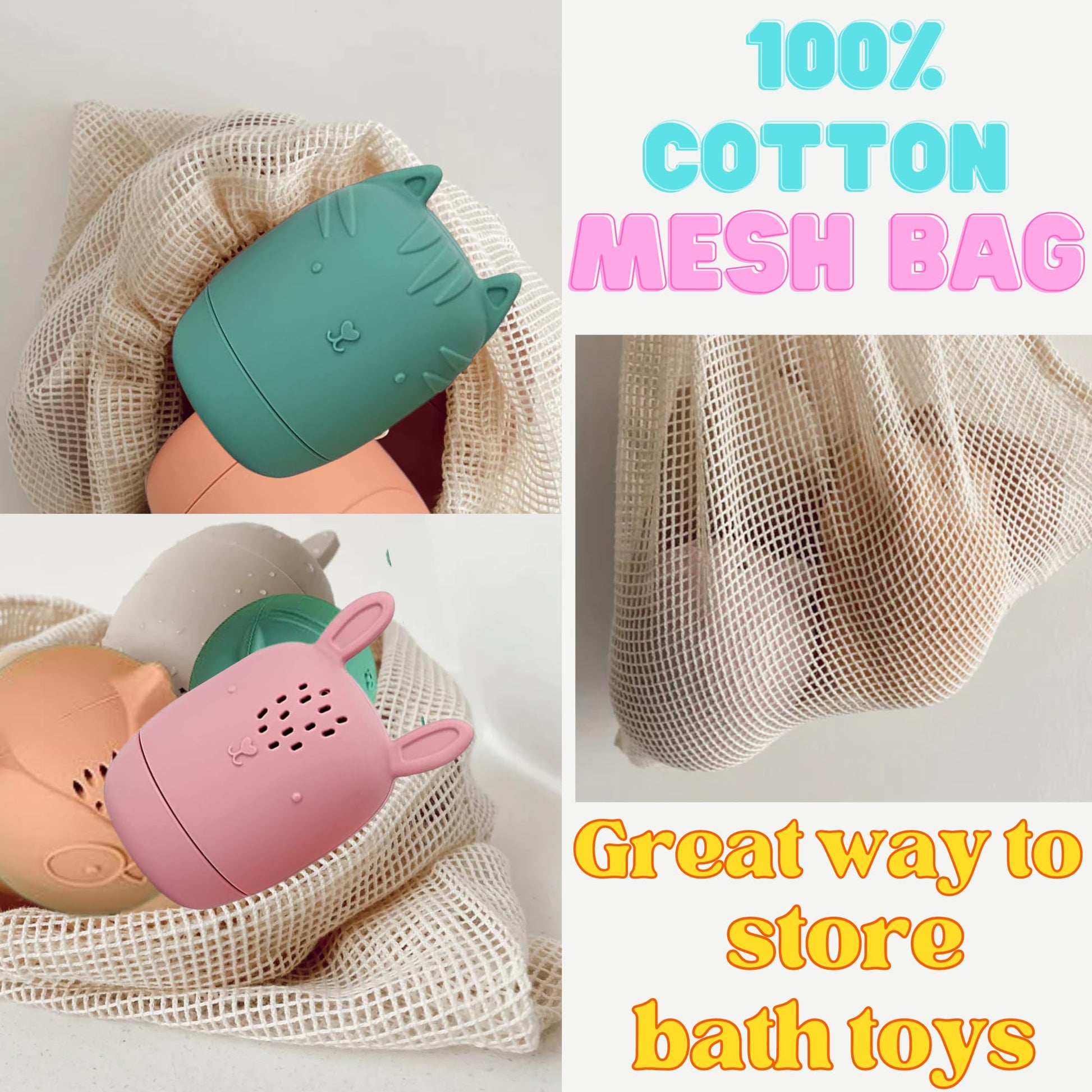 INCLUDES: Each set comes with 1 organic cotton storage bag and 4 adorable bath toys, making it easy to keep playtime organized and tidy.