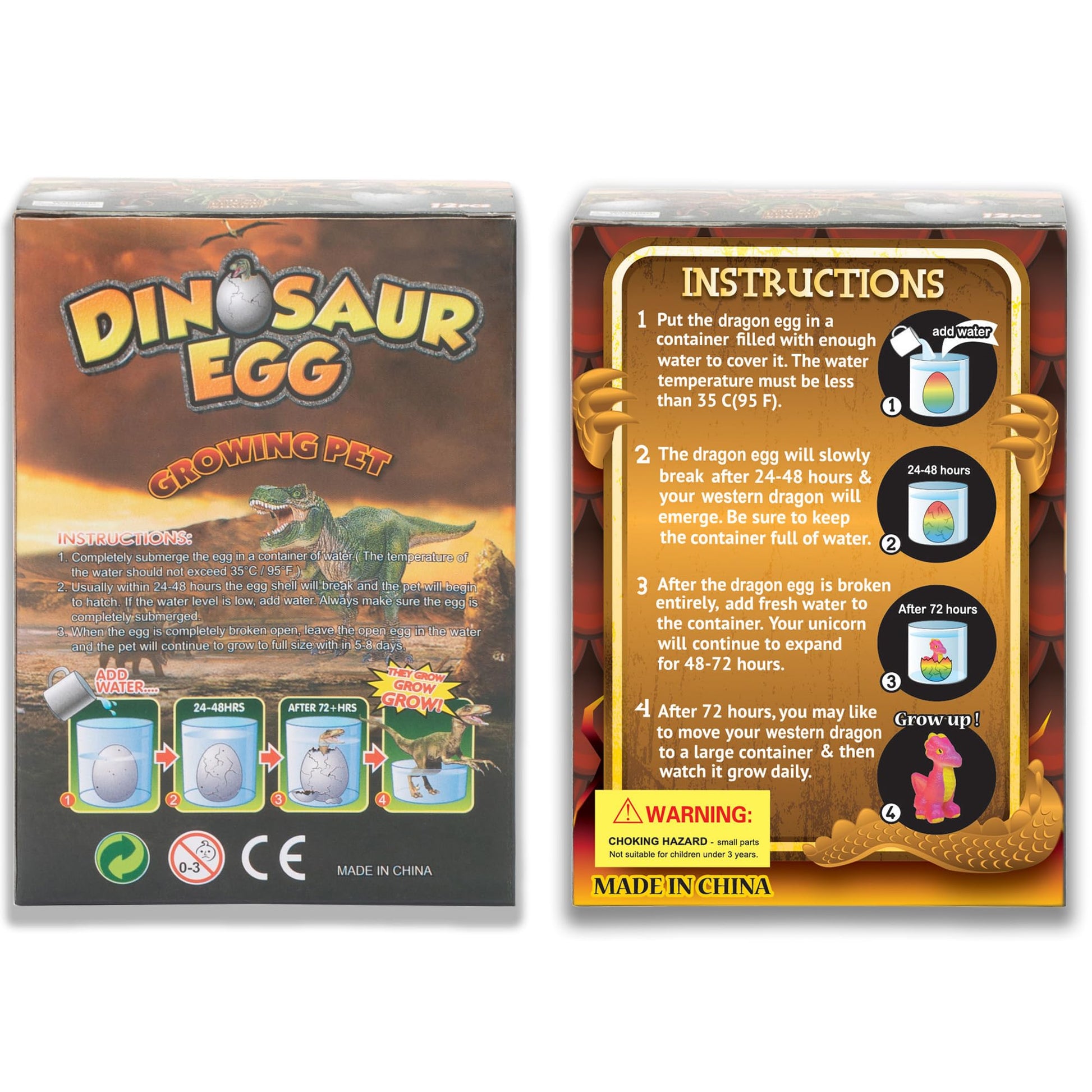 - Q: How do the dragon and dinosaur hatch eggs work? A: The hatch eggs are designed to grow over time. You simply need to submerge each 2.5-inch egg in water for 2-3 days, and as the egg shell cracks, the toy figurine inside will begin to grow.