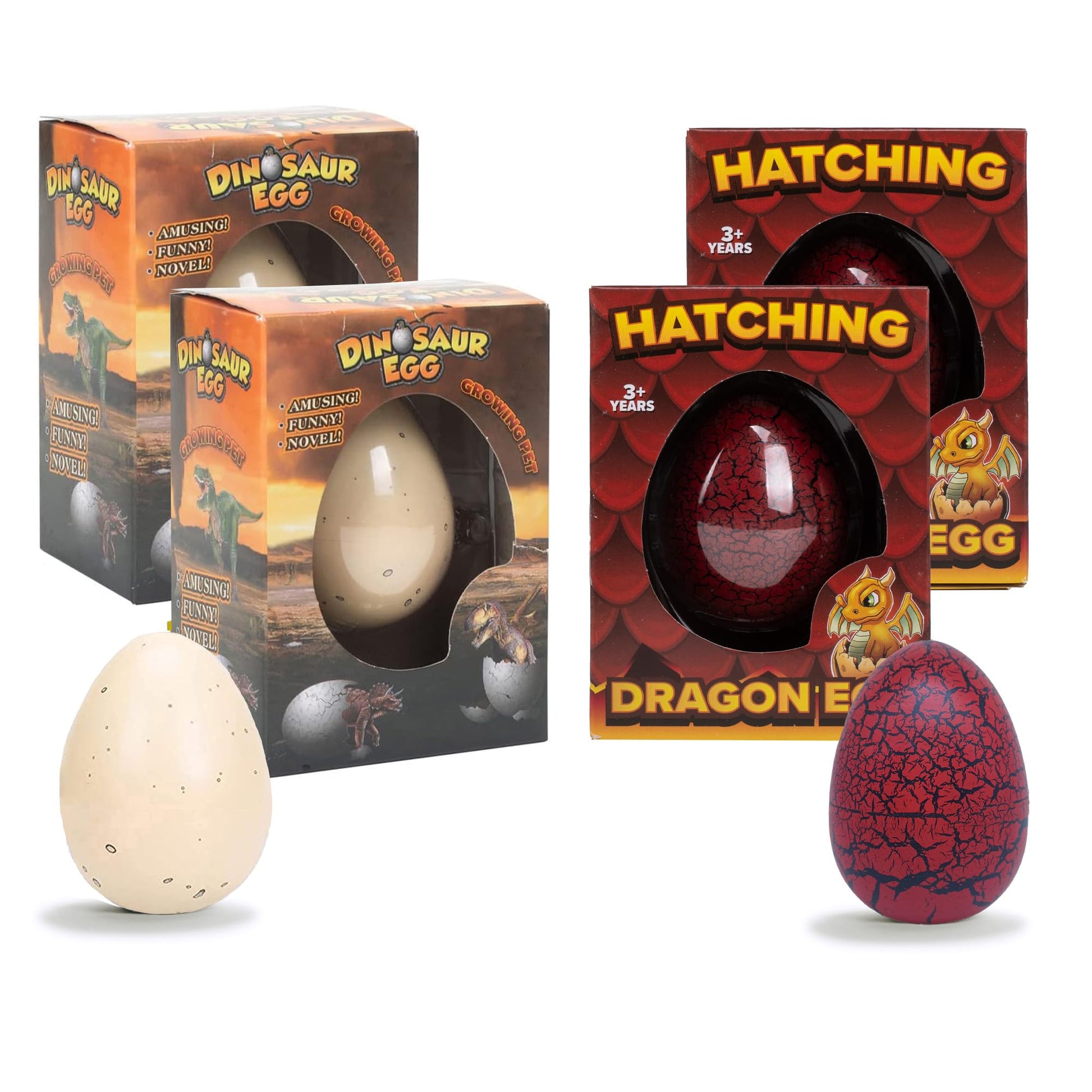 Class Collections Surprise Growing Dragon And Dinosaur Hatch Egg Kids Novelty Toy - Pack Of 4, Red