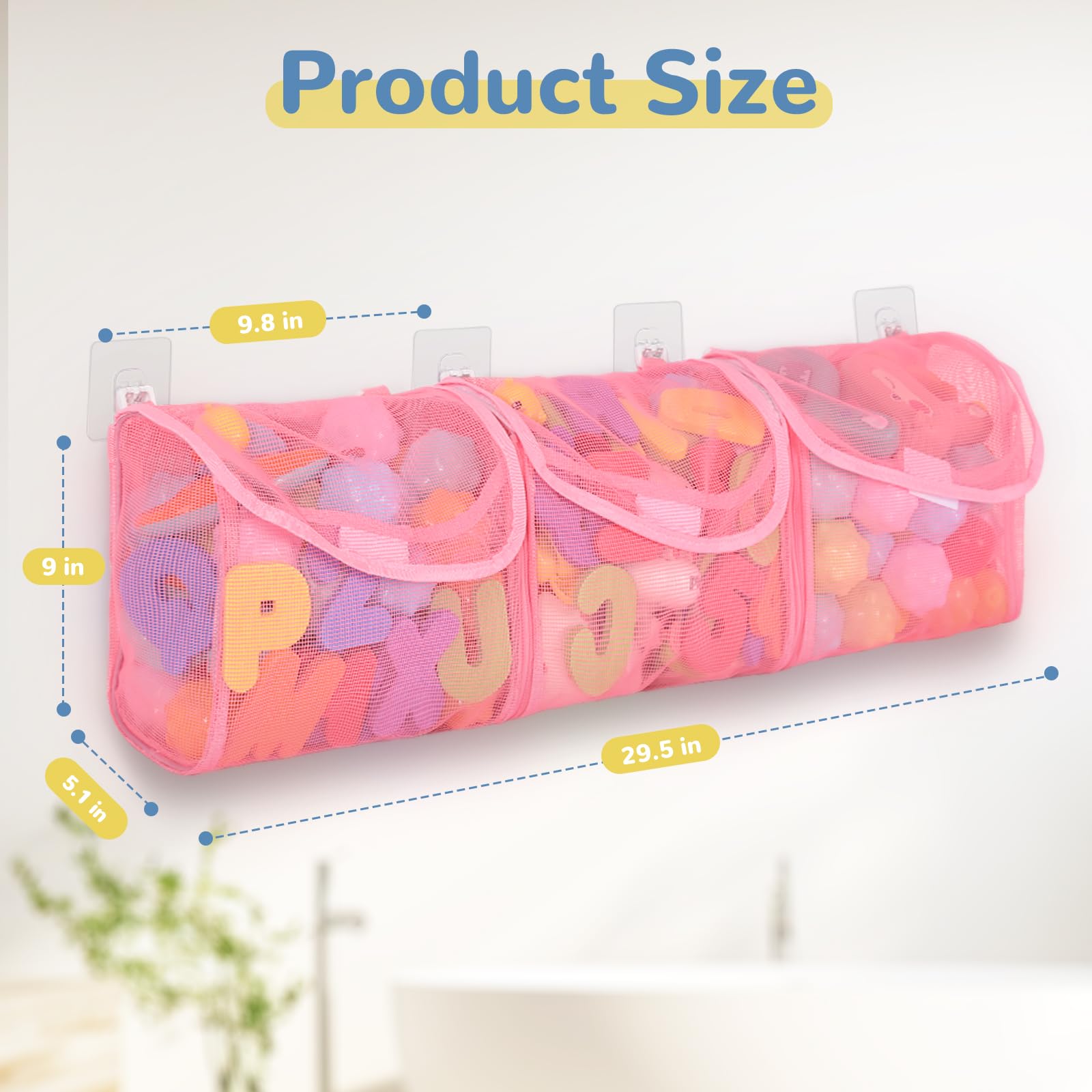 Docmon Bath Toy Storage, Detachable 3 Compartments Bath Toy Holder, Large Capacity Bathtub Toy Storage, Mesh Beach Toy Bag Showe