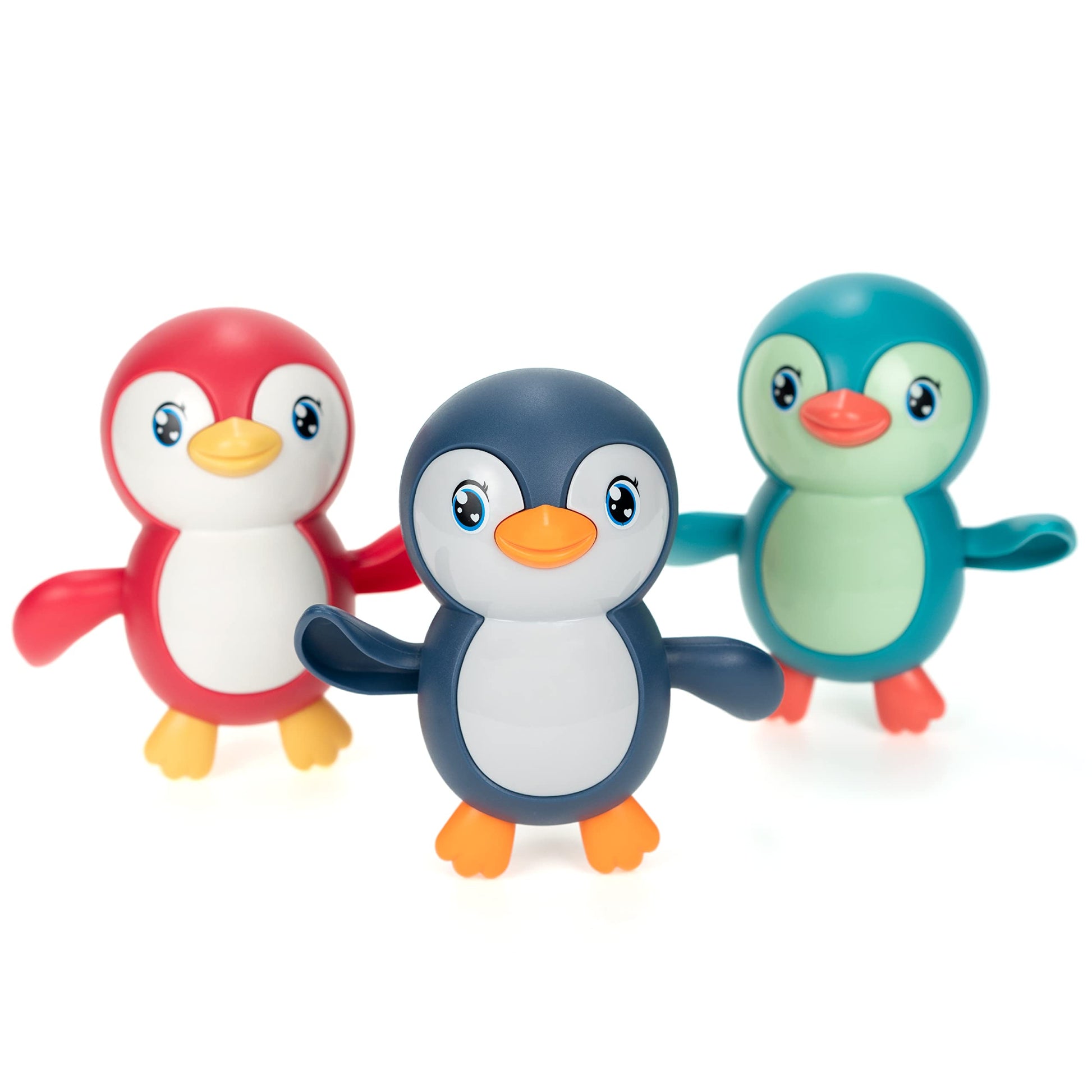 • Q: How do the wind-up swimming penguins work? A: These bath toys feature a wind-up mechanism that allows the penguins to swim through the water. When wound up for 3-4 circles, they swim for about 25 seconds, and when fully wound, they can swim for up to 30 seconds.
