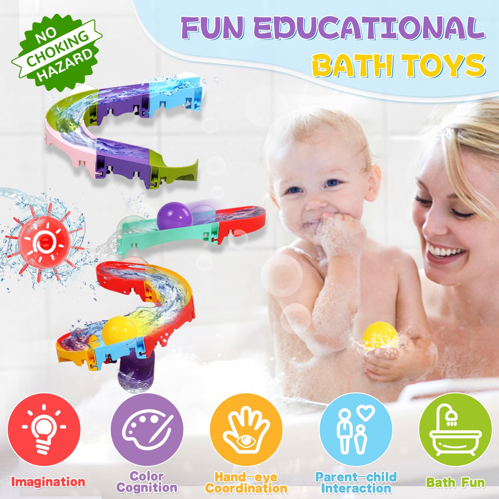Fajiabao Toddler Bath Toys For Kids Ages 1-3 2-4 Bathtub Toys Diy Slippery Slide Track Fun Baby Shower Toys Birthday Gift For Boys Girls Bath Time 1 2 3 4 5 6
