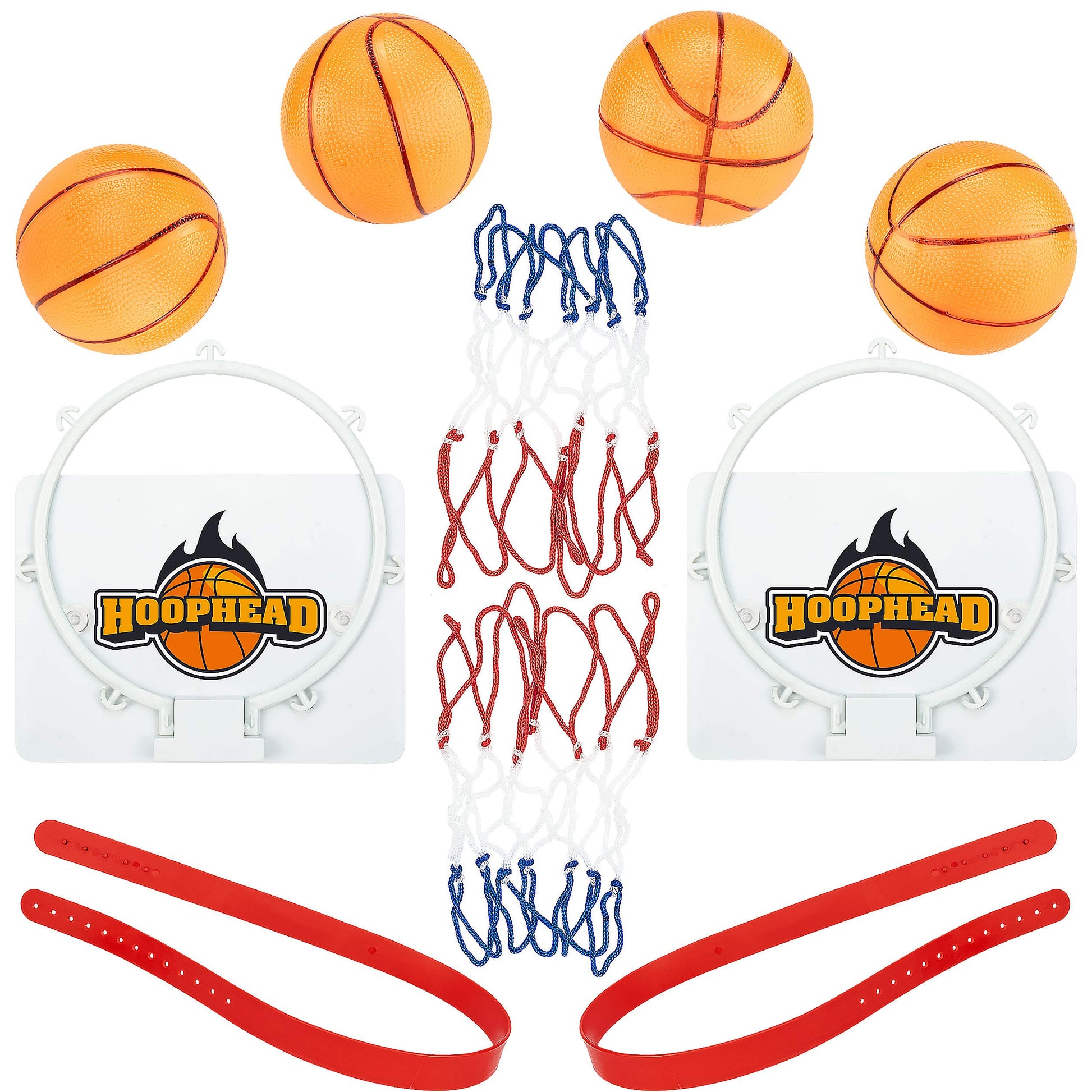 - Q: What does the HoopHead Basketball Game Set include? A: The set includes everything you need to play, such as hoops, headbands, nets, and four balls, providing a complete package for an exciting game experience.