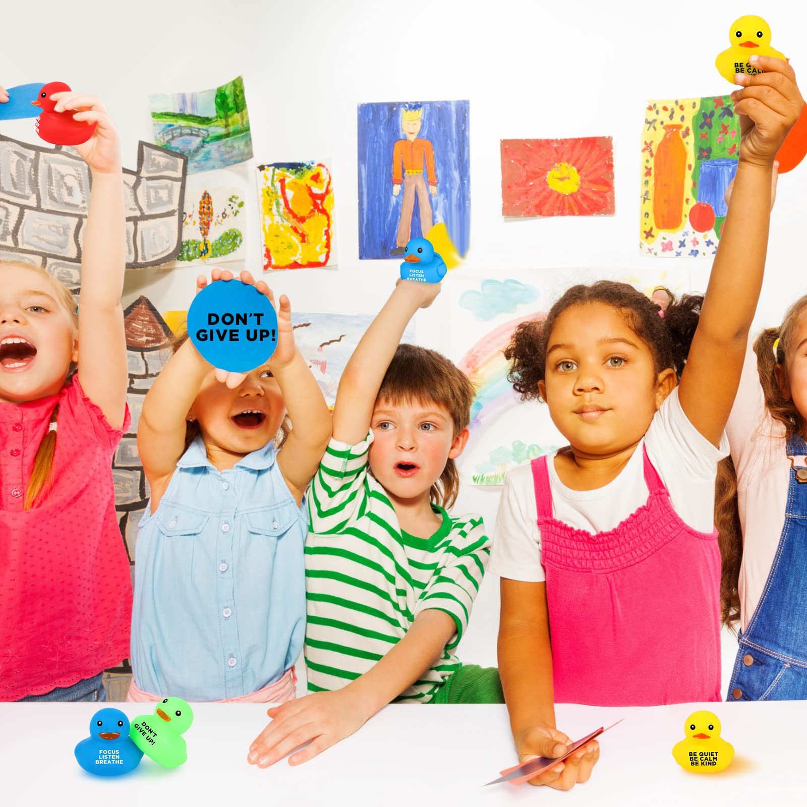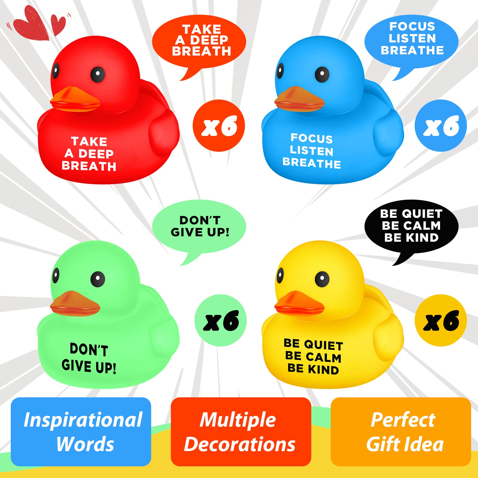 Lenwen 24 Pcs 1.89 Inch Rubber Duck Bath Toy Inspirational Gift Motivational Rubber Ducks Thank You Gifts Inspirational Party Favors Baby Shower Decorations Birthday (Red Yellow Blue Green)