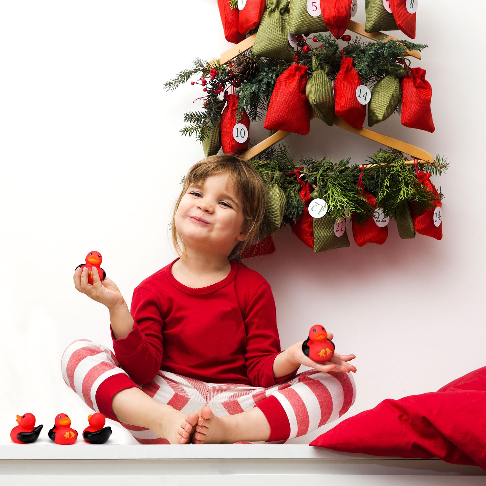 Leyndo 24 Pcs Christmas Mini Rubber Duck Bulk with Xmas Bell for Cruise Ship Party Favors Gifts Bathtub Floating Pool Squeaky Red Black Small Duck for Xmas Baby Shower Party Supplies