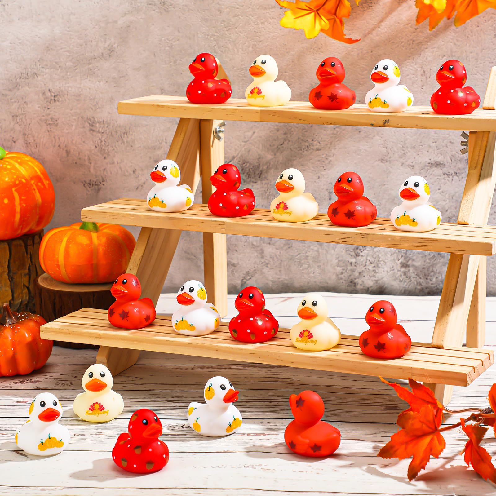 Libima 24 Pcs 2 Inch Fall Mini Rubber Ducks Thanksgiving Rubber Duckies With Pumpkin Leaf Turkey Printed Fall Theme Rubber Ducks