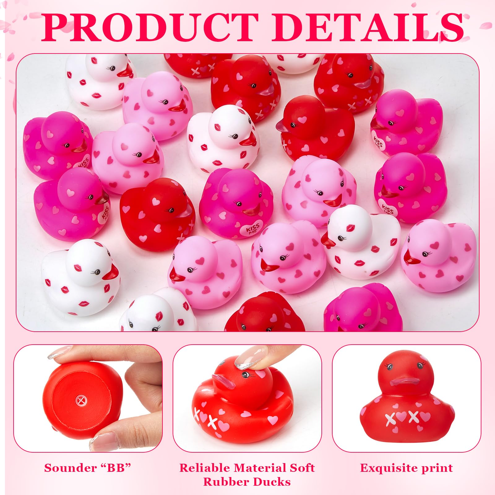 Features: Happy Bath: These Valentine Rubber Duckies Have Enough Air In Their Bodies To Keep Them Floating On The Water, And When You Press Them, They Make A Crisp Sound That Adds Fun To The Bath, So They'Re Ideal For Baby Showers Or Babies Playing In The Tub And Pool. Educational Toys: The Valentine Toys In Bulk Help To Develop Little Ones' Intellectual And Tactile Development To A Certain Extent. In Addition, Exposing Your Loved Ones To Brightly Colored Toys Can Help Them Identify Colorsspecifications: Material: Rubbersize: 1.8 Inchcolor: As Picture Shownpackage Includes: 24 X Rubber Toysnotes: Manual Measurement, Please Allow Slight Errors On Size. The Color May Exist A Slight Difference Due To Different Screen Displays. These Products Are Only Suitable For Kids Over 12 Years Old.