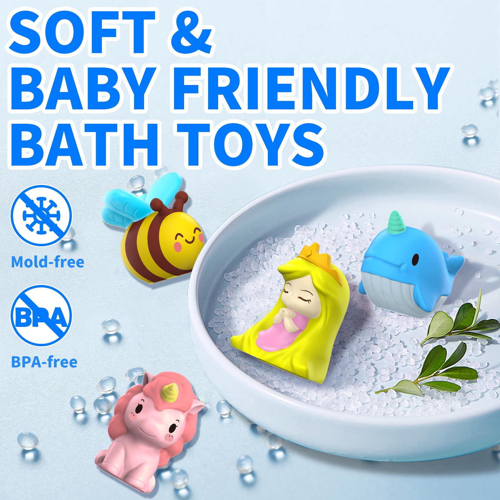 Oriate 6Pcs Fairy Princess Bath Toys For Girls, Silicone Finger Puppet And Boat, Mermaid, Princess, Bee, Whale, Unicorn For Toddlers Kids 1-3