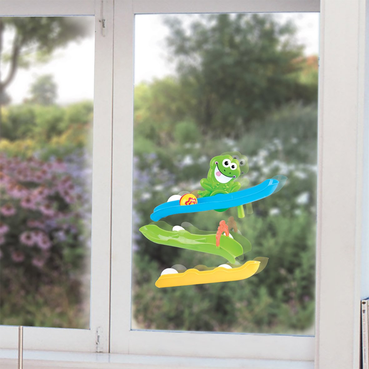 Product DescriptionPlayGo Froggy pond tumbler with bath wall suction slides & water skiing & squirting frog our vital baby stick & slide bath toy brings the water park to bath time. The Stick & slide fixes to the side of the bath or on your smooth bathroom tiles. The cute frog squirters sit on their skis and shoot down the slide - see how fast They go. Whilst your little one is having bath time fun, you will be able to wash them whilst they are distracted. The squirters are perfectly sized for your little ones to squeeze and splash around.turn bath time into fun time with our colorful floating bath toys. Our spraying magical fountain bath time toys are top rated bath toys for toddlers, kids, infants, girls, boys age one year old and up.From the ManufacturerBath time was never so much fun. Have your little boy or girl watch as the colorful balls tumble and turn on the transparent slides. Can be attached to bathroom tiles.