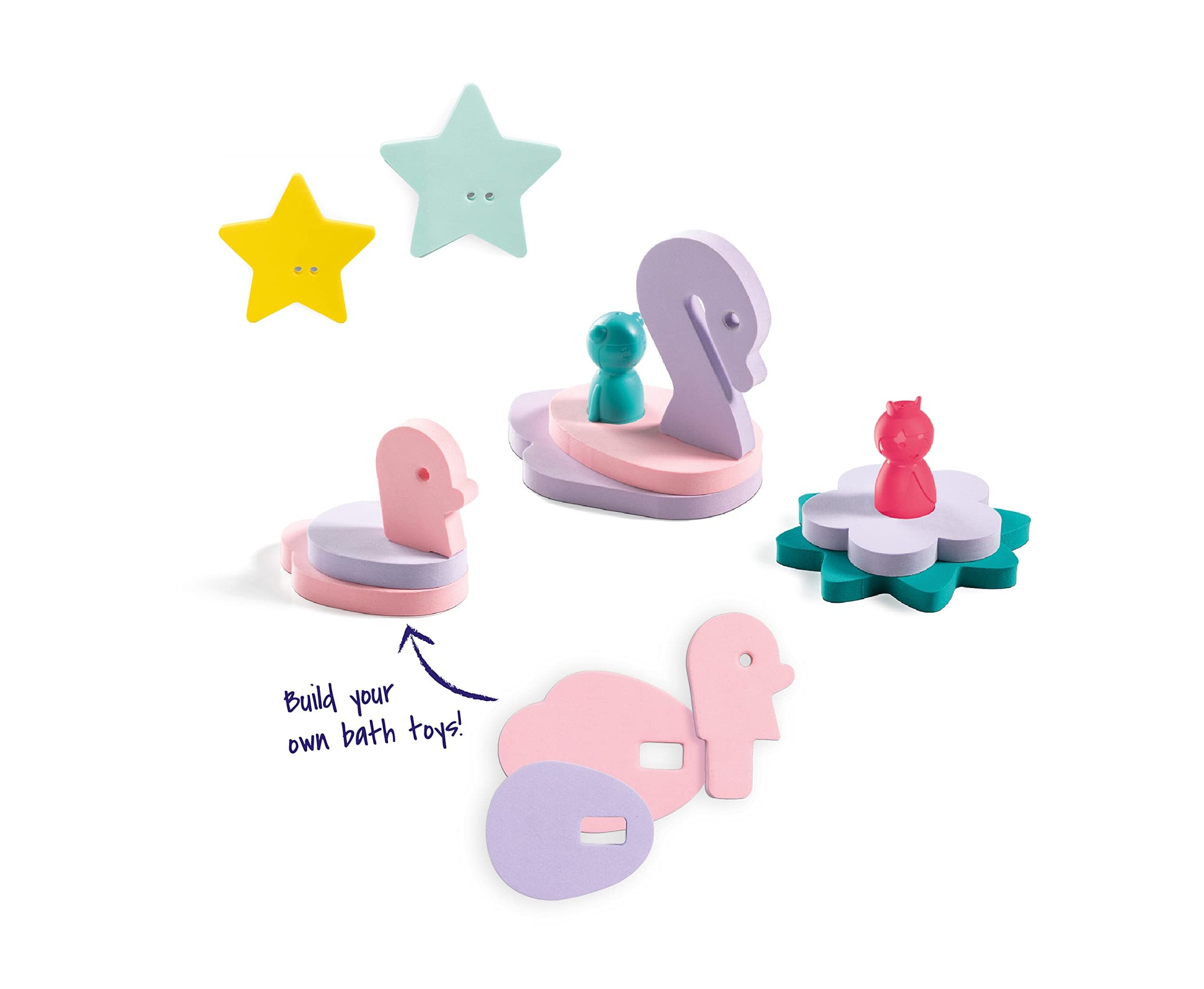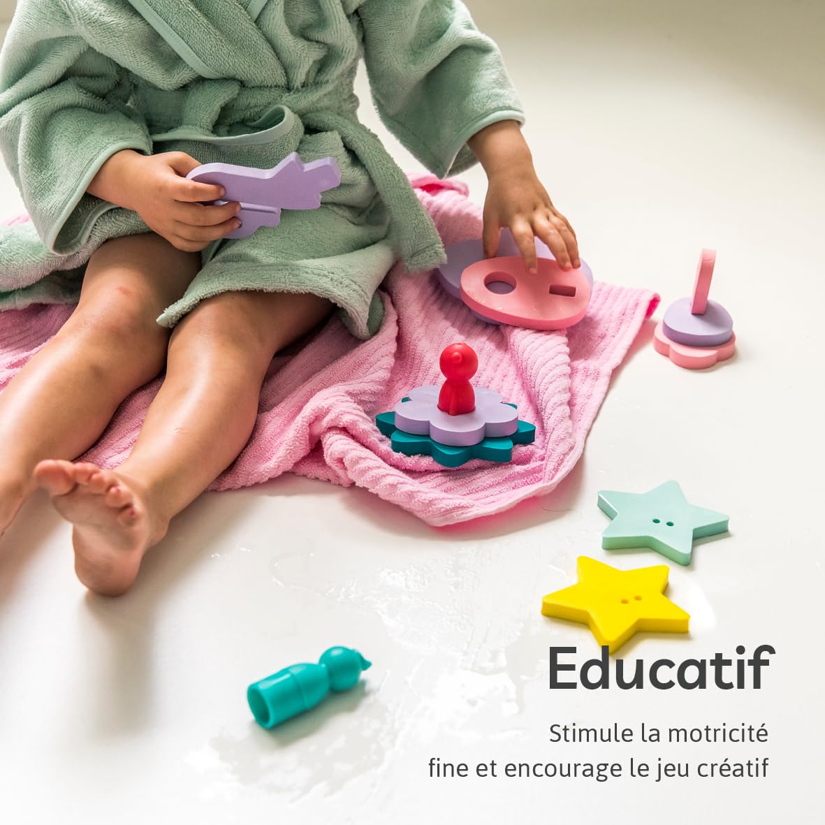 Ready to go sailing? How about going on an adventure with a sailboat or what about a little race with the motorboat? Everything is possible with this fun bath puzzle. Make the playground even bigger and combine it with other sets. Assembling the various shapes helps improve childrens fine motor skills and stimulates their creativity and imagination. All the shapes are made out of a soft foam, so they stay afloat. The set also contains 3 finger puppets made from sustainable plastic