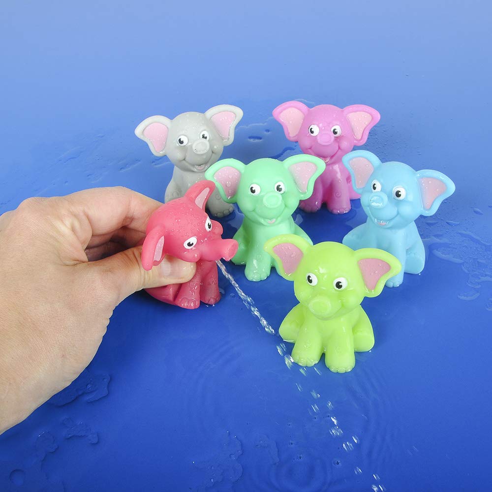 Contents - 2 Inch Rubber Water Squirting Elephants, One Dozen | Fun - Two-inch water-squirting elephants bring endless fun, perfect for splashing in the tub or pool. Their tiny size and playful squirts create laughter-filled moments, making bath time or outdoor play a delight with their surprising bursts of water. | Occasions - These tiny water-squirting elephants are ideal for bath time fun, pool parties, or as cute party favors. They