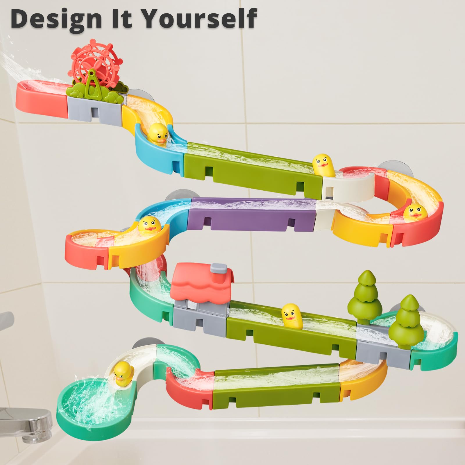 Socbtnso Duck Slide Toys, Bath Toys For Kids Ages 4-8, Diy Building Kit, Bathtub Time Birthday Gift For Toddler 3 + Year Old (51 Pcs)