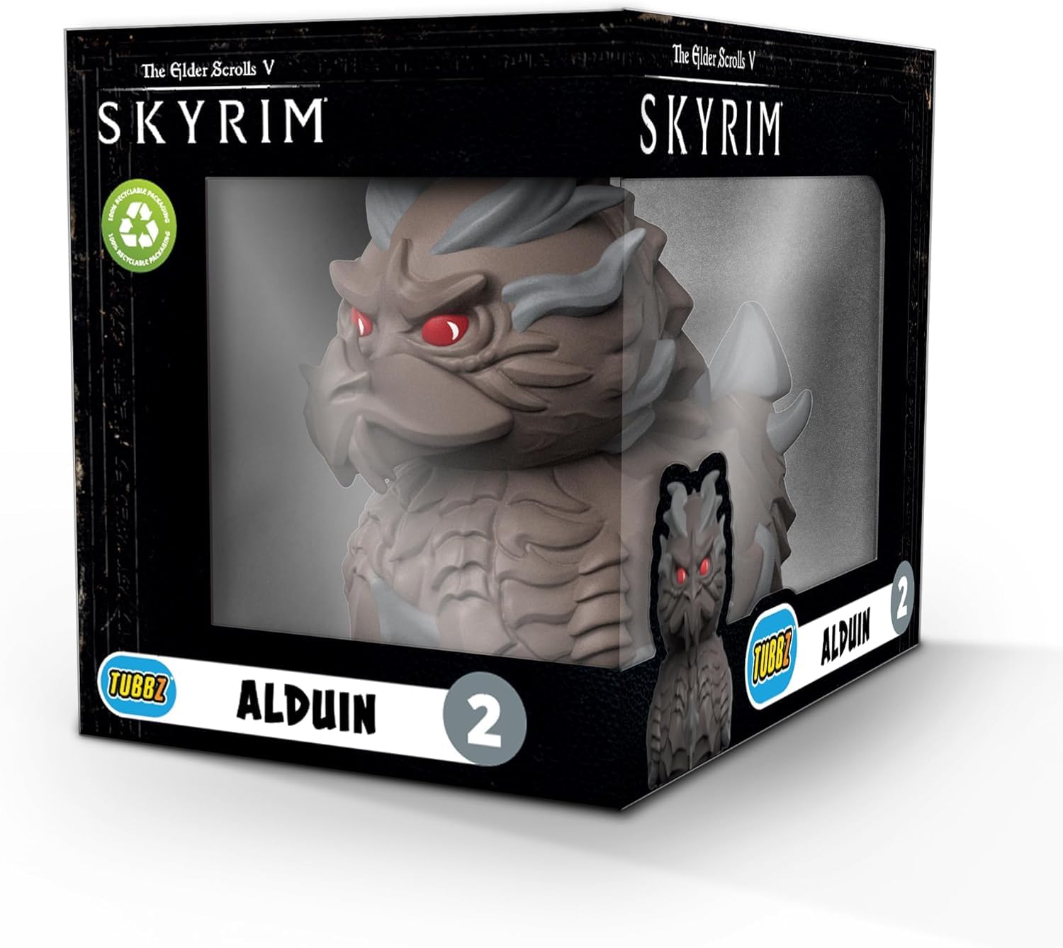 - Q: What is the height of the TUBBZ - Skyrim - Alduin #2 collectible figure? A: The TUBBZ - Skyrim - Alduin #2 figure is approximately 9 centimeters (3.54 inches) tall when removed from its tub display stand.