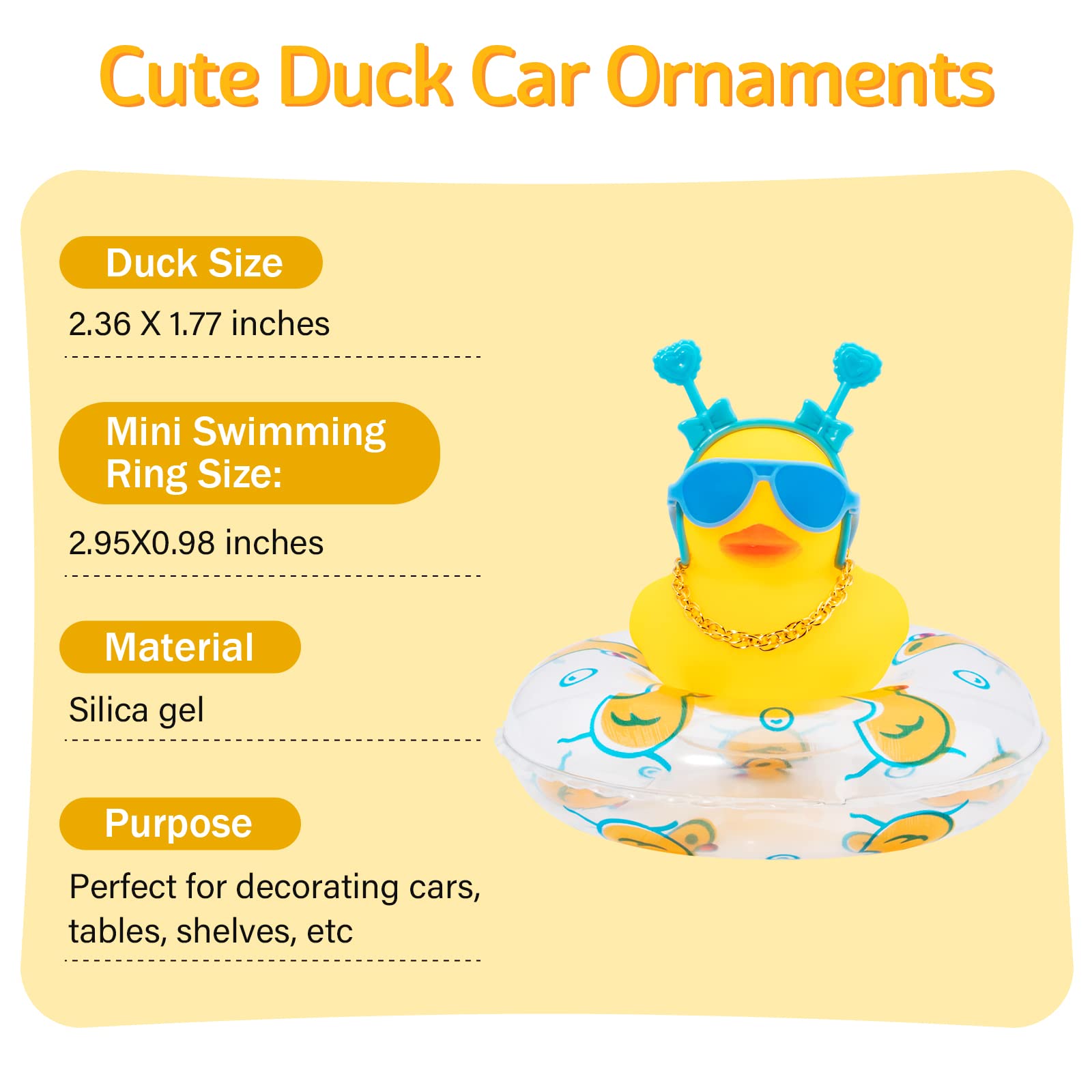wonuu Car Duck Rubber Duck Car Ornaments Duck Car Dashboard Decorations with Cute Headband Swim Ring Necklace Sunglasses B-Blue Double Heart Headband