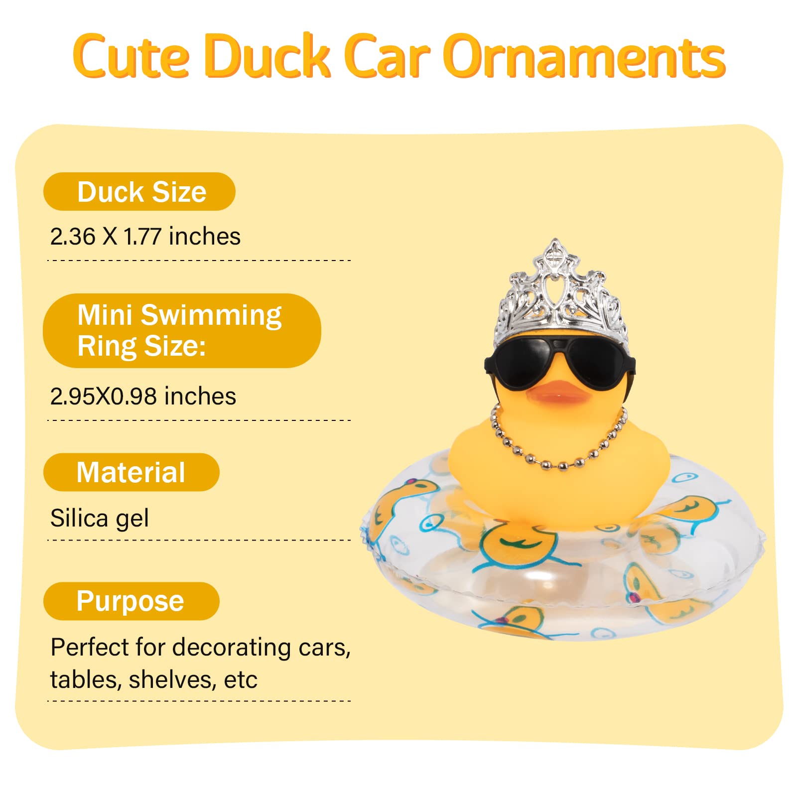 View compareWonuu Car Duck Rubber Duck Car Ornaments Duck Car Dashboard Decorations With Cute Headband Swim Ring Necklace Sunglasses, C-Male