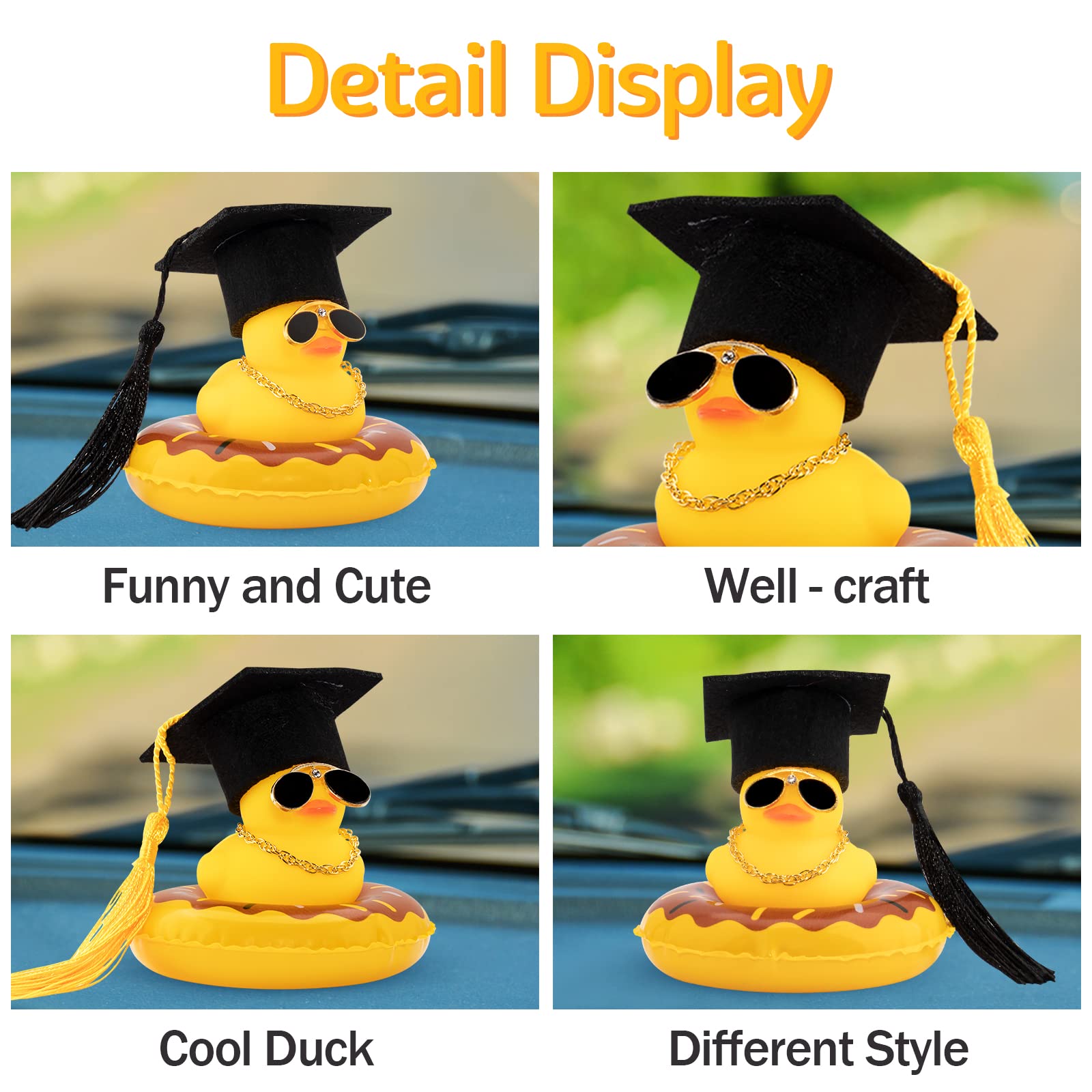 Wonuu Swim Ring Rubber Ducks With Mini Diamond Glasses Hat Necklace For Cars Dashboard Decorations Car Accessories Toy Duck Car
