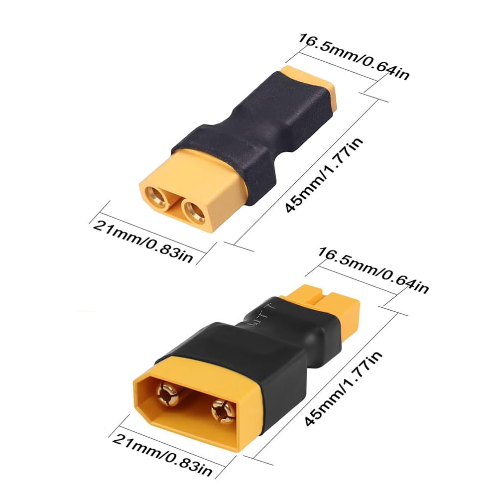 - Q: What is the purpose of the BABUVYA XT60 to XT90 Adapter? A: The BABUVYA XT60 to XT90 Adapter is designed to convert battery connections from XT60 to XT90, allowing compatibility between different types of RC LiPo batteries and electronic speed controls (ESC) or chargers. It facilitates a secure and efficient connection without the need for wires.