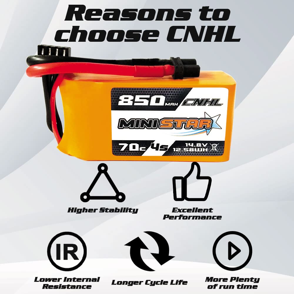 View compareCNHL 4S Lipo Battery 850mAh 70C 14.8V lipo Battery with xt30u for RC Airplane Helicopter Quadcopter multirotor FPV Racing Drone(