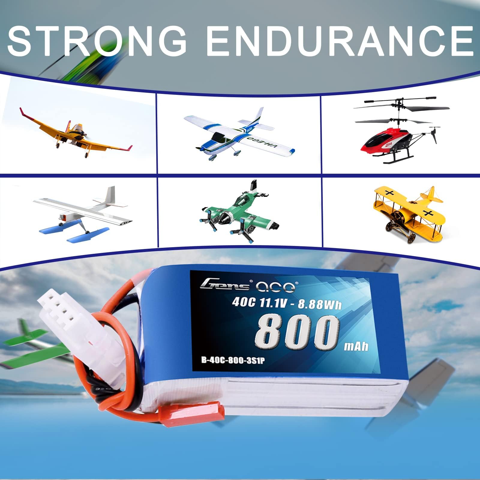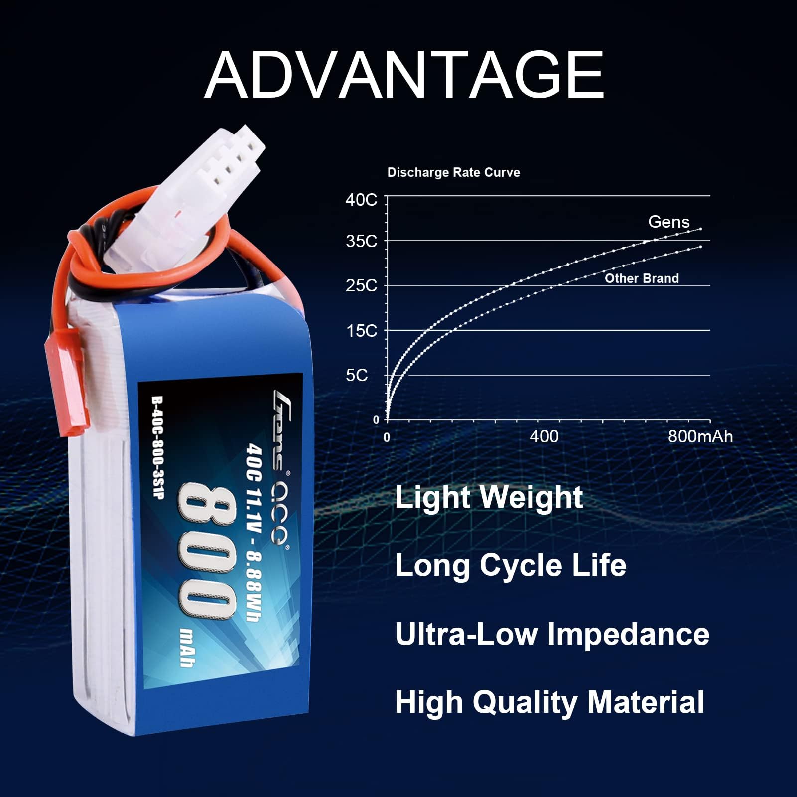 Gens ace 3S 800mAh 11.1V 40C LiPo Battery Pack with JST Plug(2 Pcs)