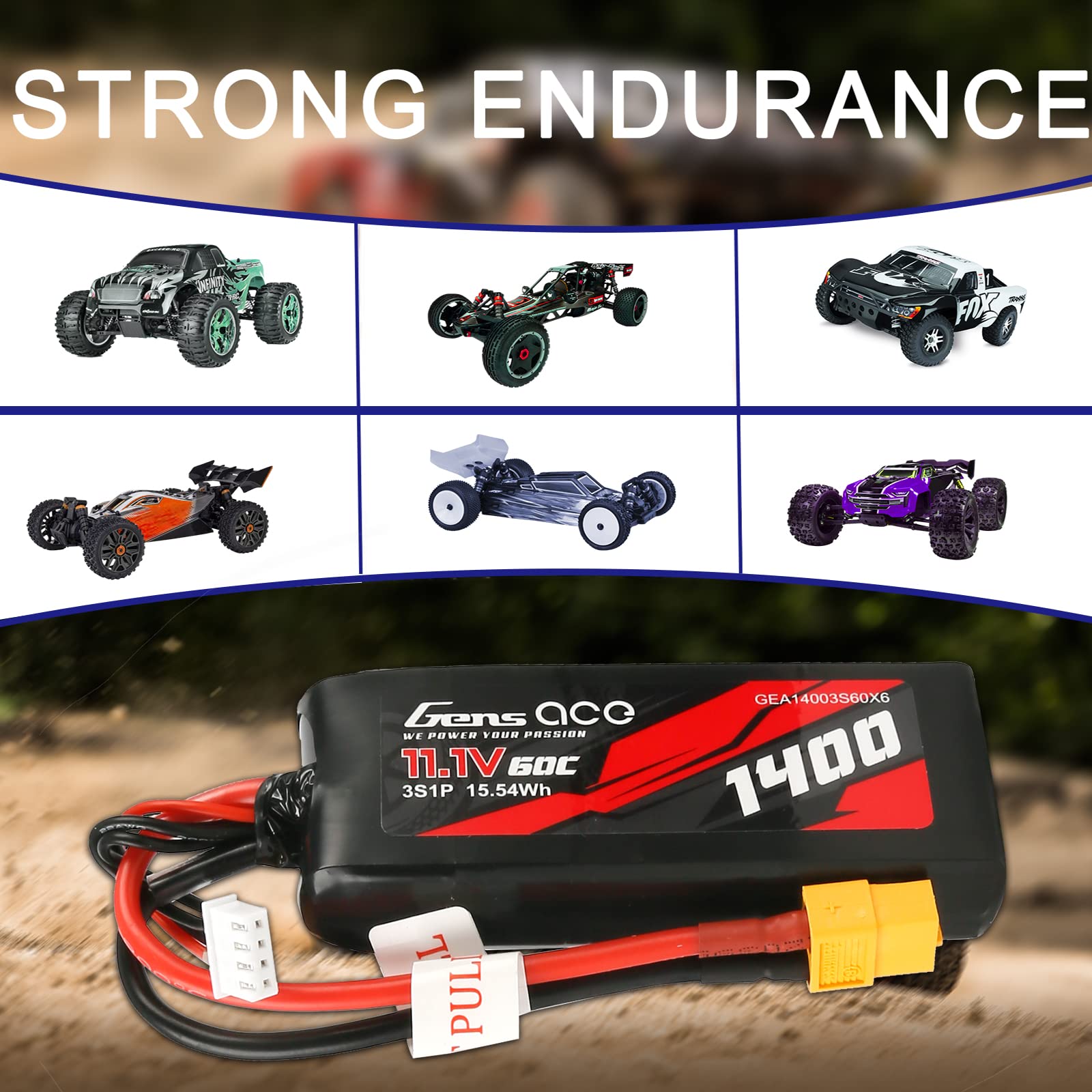 Gens ace 3S Lipo Battery 11.1V 1400mAh 60C Lipo Battery with XT60 Plug for 1/14 1/16 RC Cars
