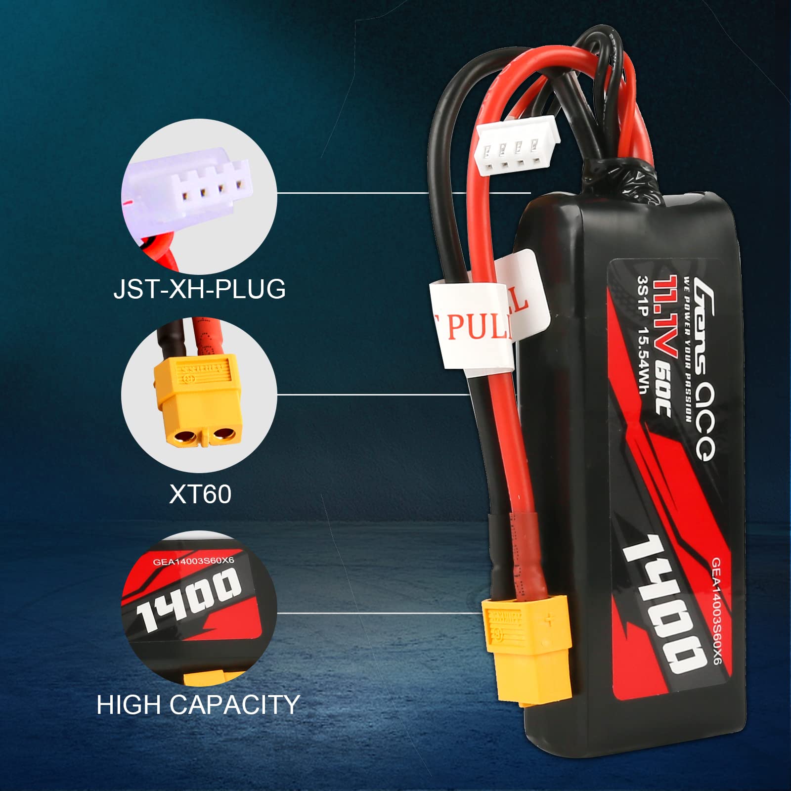 - Q: What is the capacity and voltage of the Gens ace 3S Lipo Battery? A: The Gens ace 3S Lipo Battery has a capacity of 1400mAh and operates at a voltage of 11.1V.