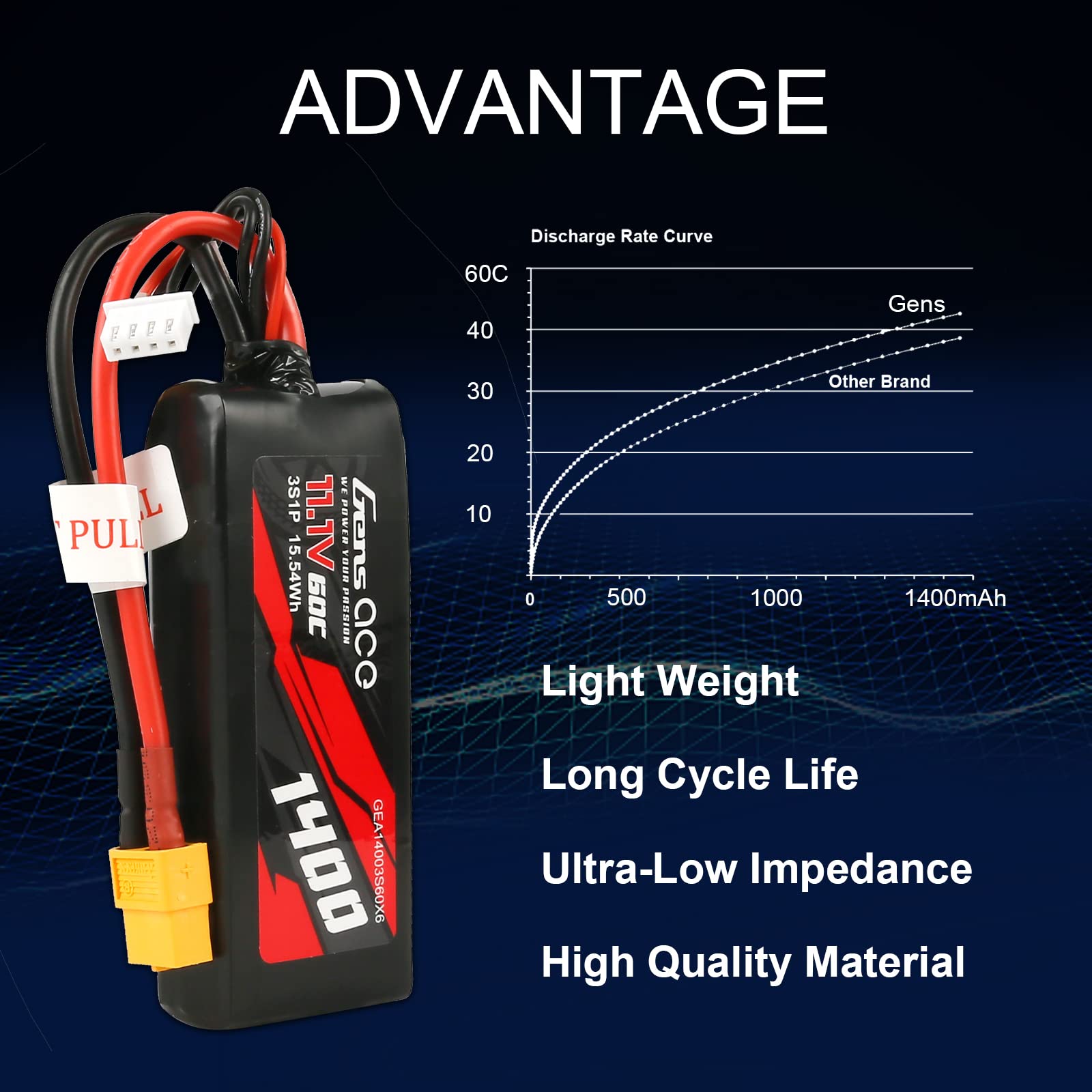 View compareGens ace 3S Lipo Battery 11.1V 1400mAh 60C Lipo Battery with XT60 Plug for 1/14 1/16 RC Cars