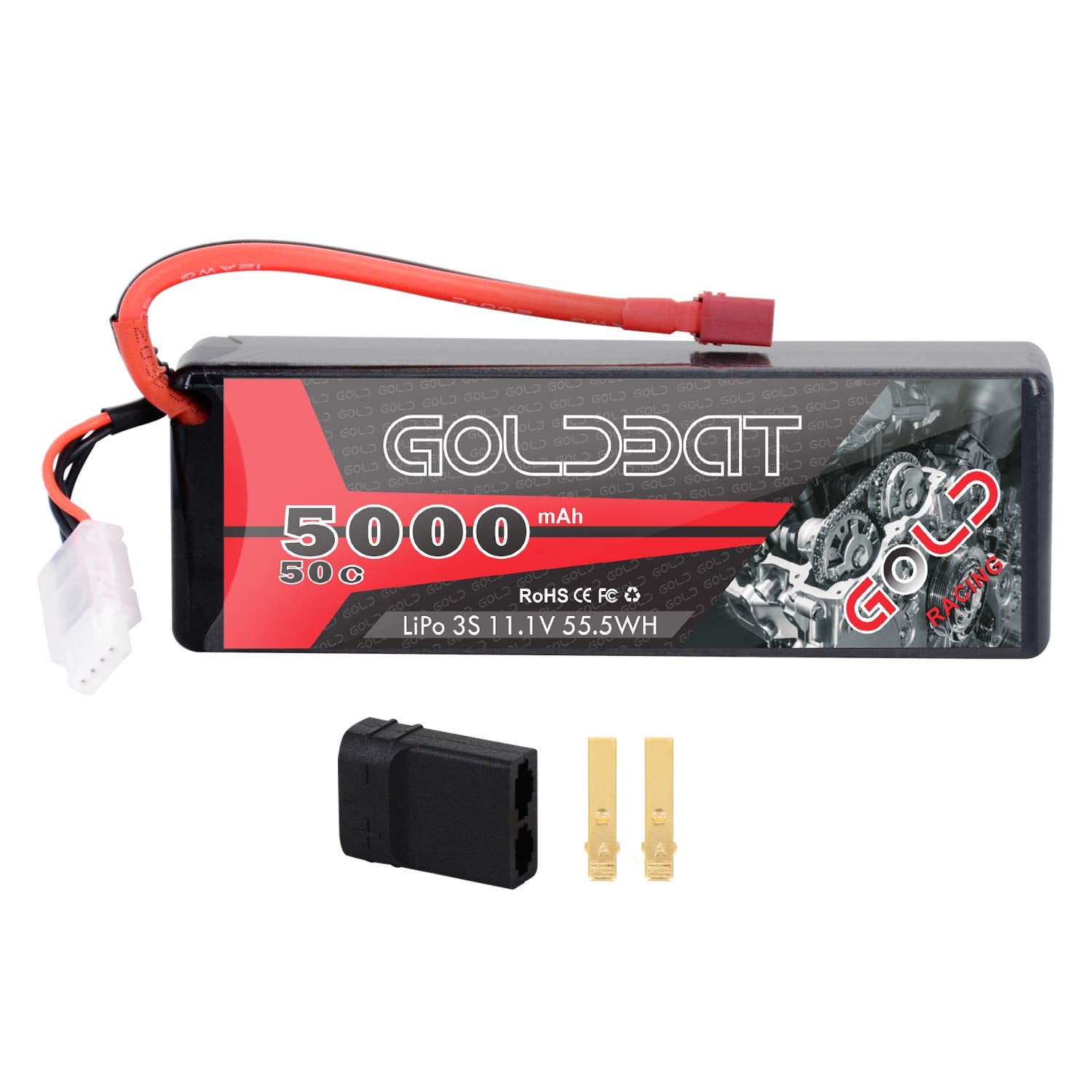 - Q: What comes included with the GOLDBAT LiPo battery when purchased? A: When you purchase the GOLDBAT 11.1V 5000mAh LiPo battery, the package includes one hardcase LiPo battery with Deans T Plug, a user manual, and a battery strap as a gift.