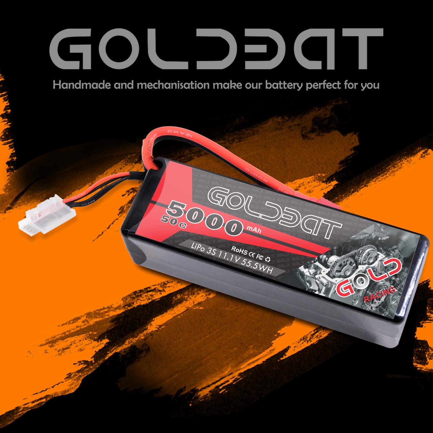 - Q: What is the discharge rate of the GOLDBAT 11.1V 5000mAh battery, and why is it important? A: The GOLDBAT 11.1V 5000mAh battery has a discharge rate of 50C, which indicates its ability to deliver high power output for demanding applications. A higher discharge rate means better performance during acceleration and handling, making it suitable for high-performance RC vehicles.