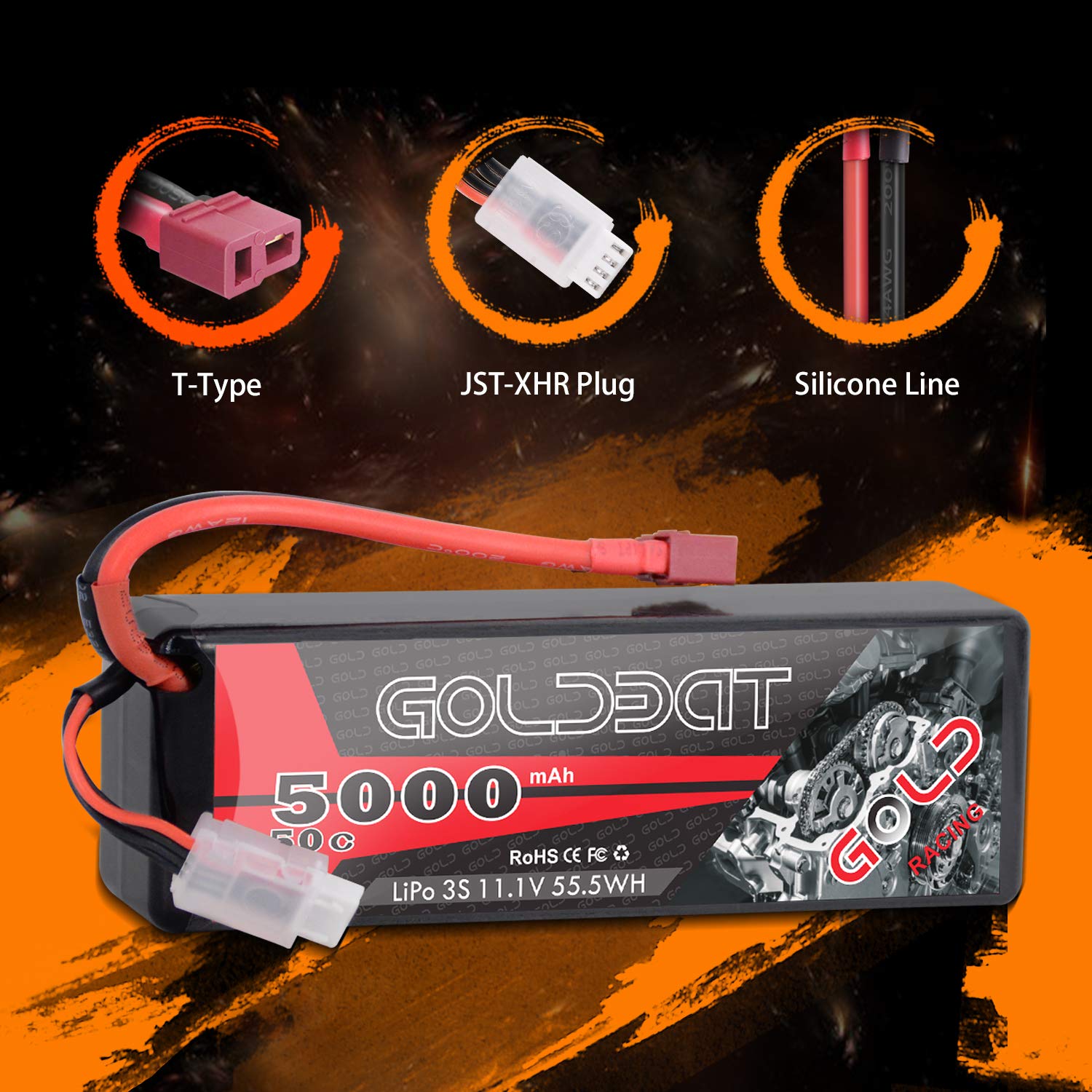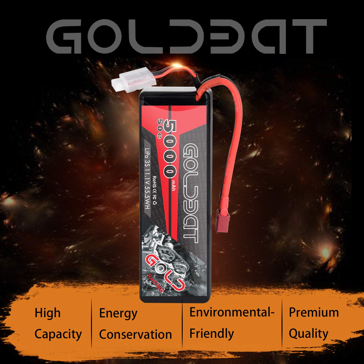 - Q: What types of RC vehicles are compatible with the GOLDBAT 11.1V 5000mAh Lipo battery? A: The GOLDBAT 11.1V 5000mAh Lipo battery is compatible with various models, including 1/8 and 1/10 RC cars such as Losi, Rustler, HPI Strada XB 1/10 RTR Electric Buggy, Team Associated, Axial, Duratrax, Jammin, Redcat Racing, Exceed RC, ElectrixRC, Emaxx, and Bandit.