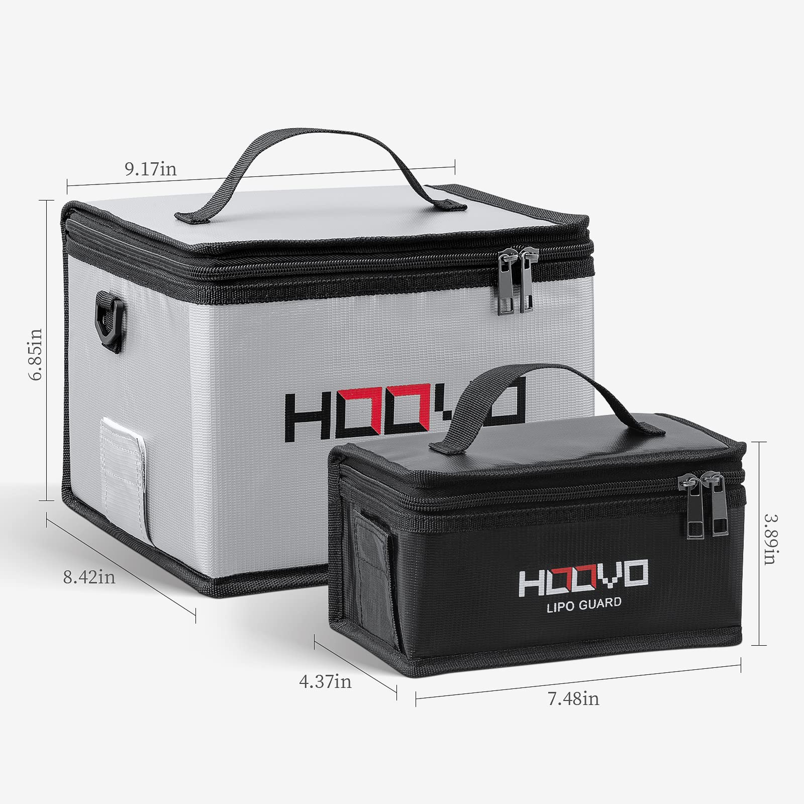 - Q: What are the dimensions of the large and small Lipo Battery Bags? A: The large HOOVO Lipo Battery Bag measures 233*174mm (9.17*6.85 inches) and the small bag measures 190*99mm (7.48*3.89 inches). This dual size option allows for storing multiple Lipo batteries of various sizes.