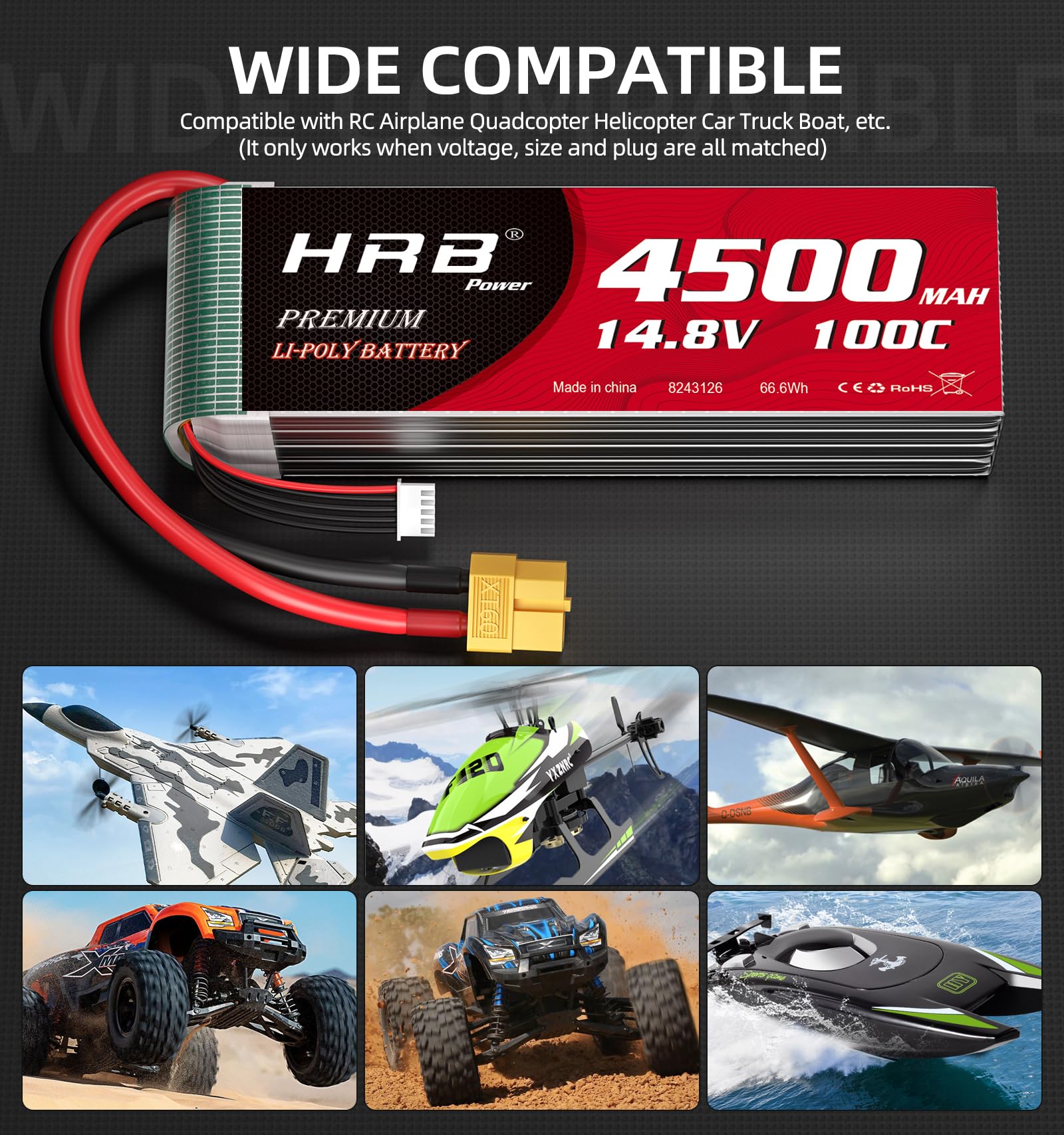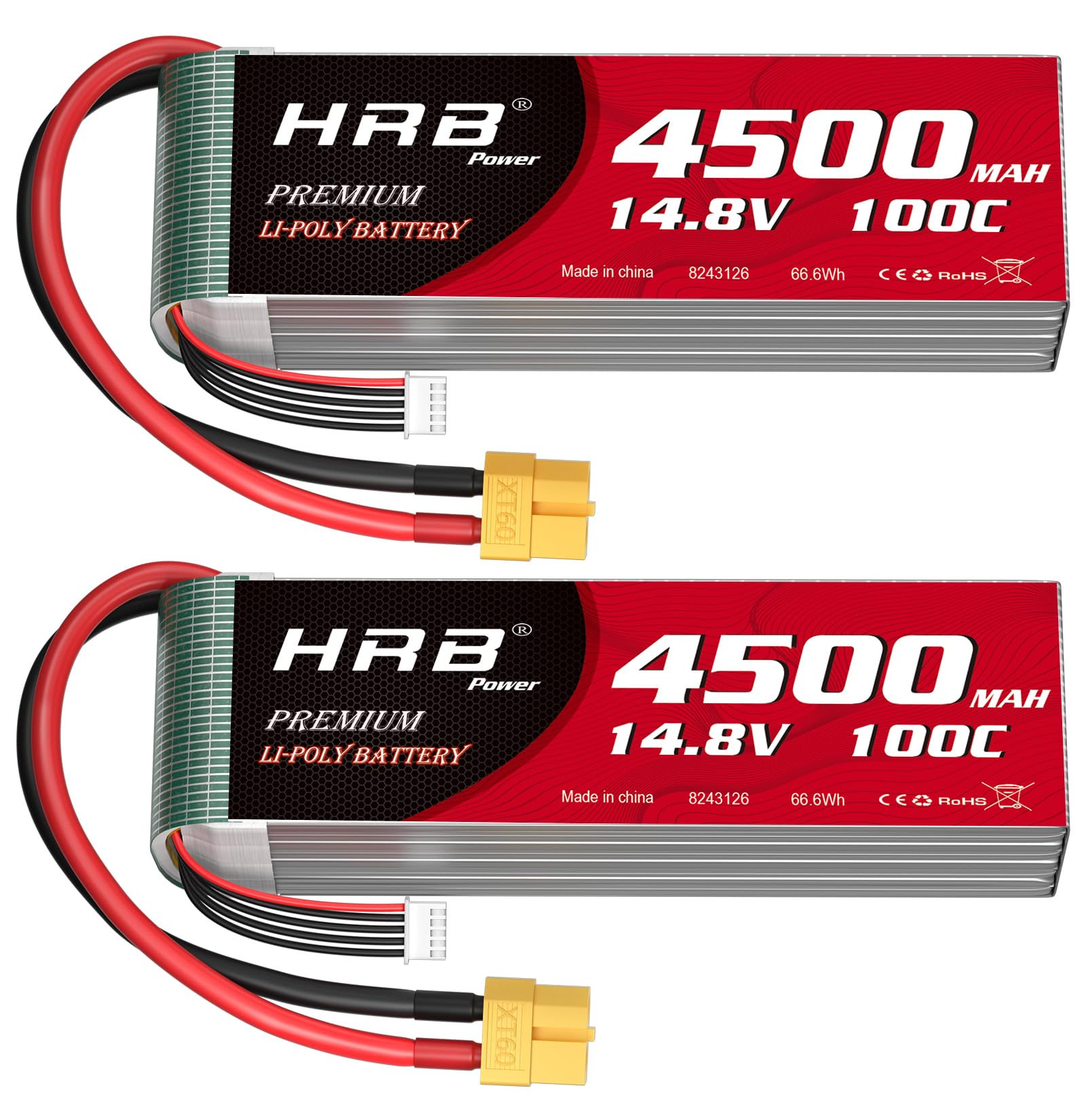 View compareHRB 2packs 4S Lipo Battery XT60 4500mAh 100C 14.8V RC Lipo Battery Compatible with RC Car RC Plane RC Truck RC Boat