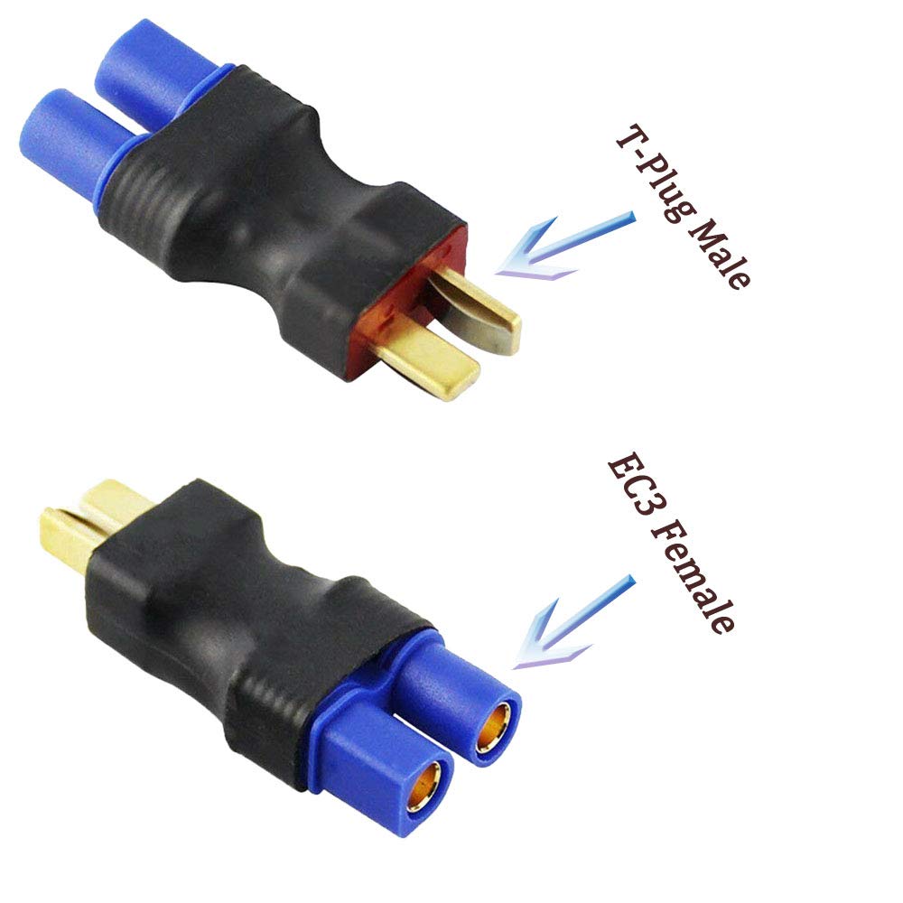 View compareLinsyRC 2pcs EC3 Male to T-Plug Female Connector Adapter and 2pcs EC3 Female to T-Plug Male Connector Adapter for RC Lipo Batter