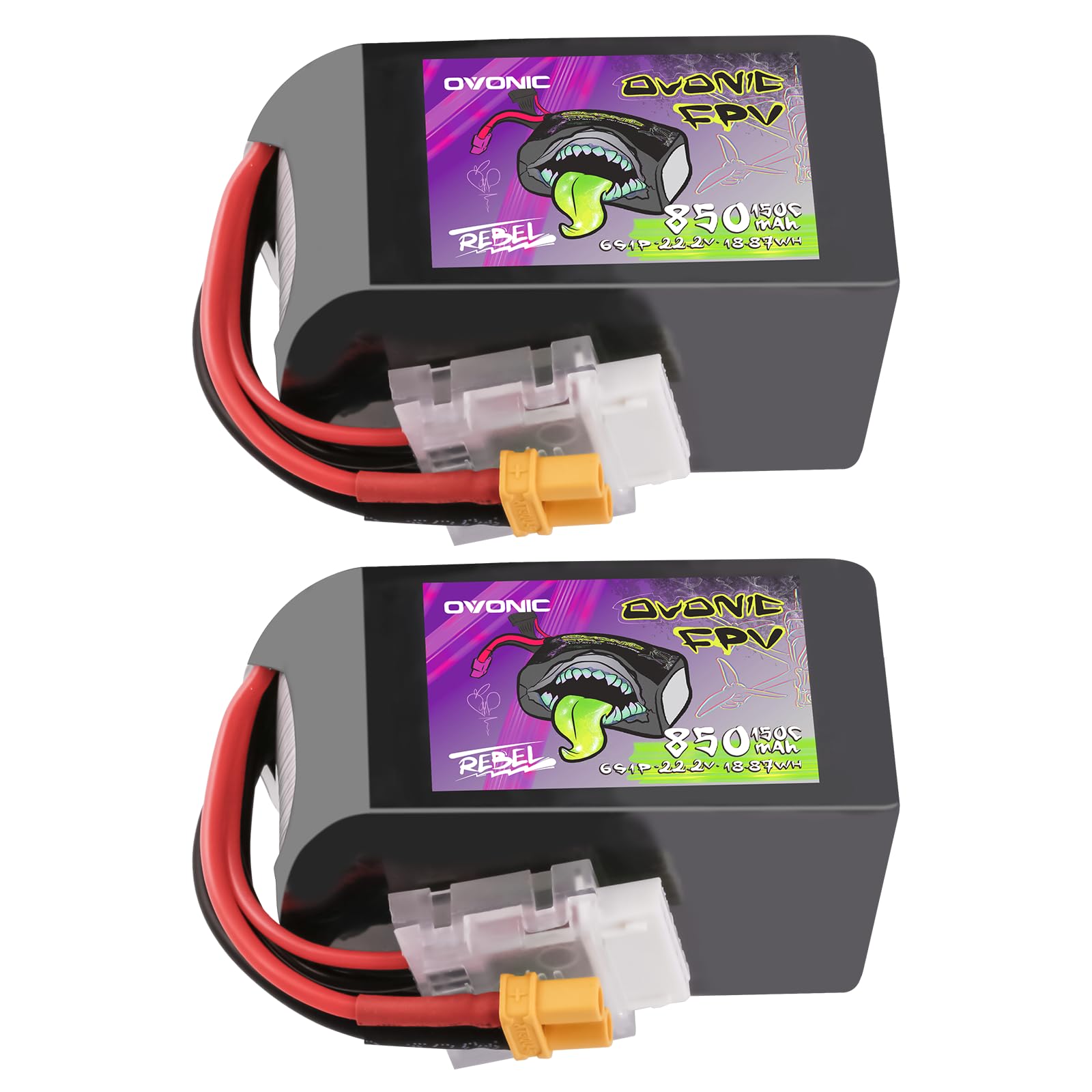 View compareOVONIC 6S Lipo Battery150C 850mAh 22.2V Lipo Battery with XT30 Connector for RC Racing FPV Drone Helicopter Quadcopter Airplane