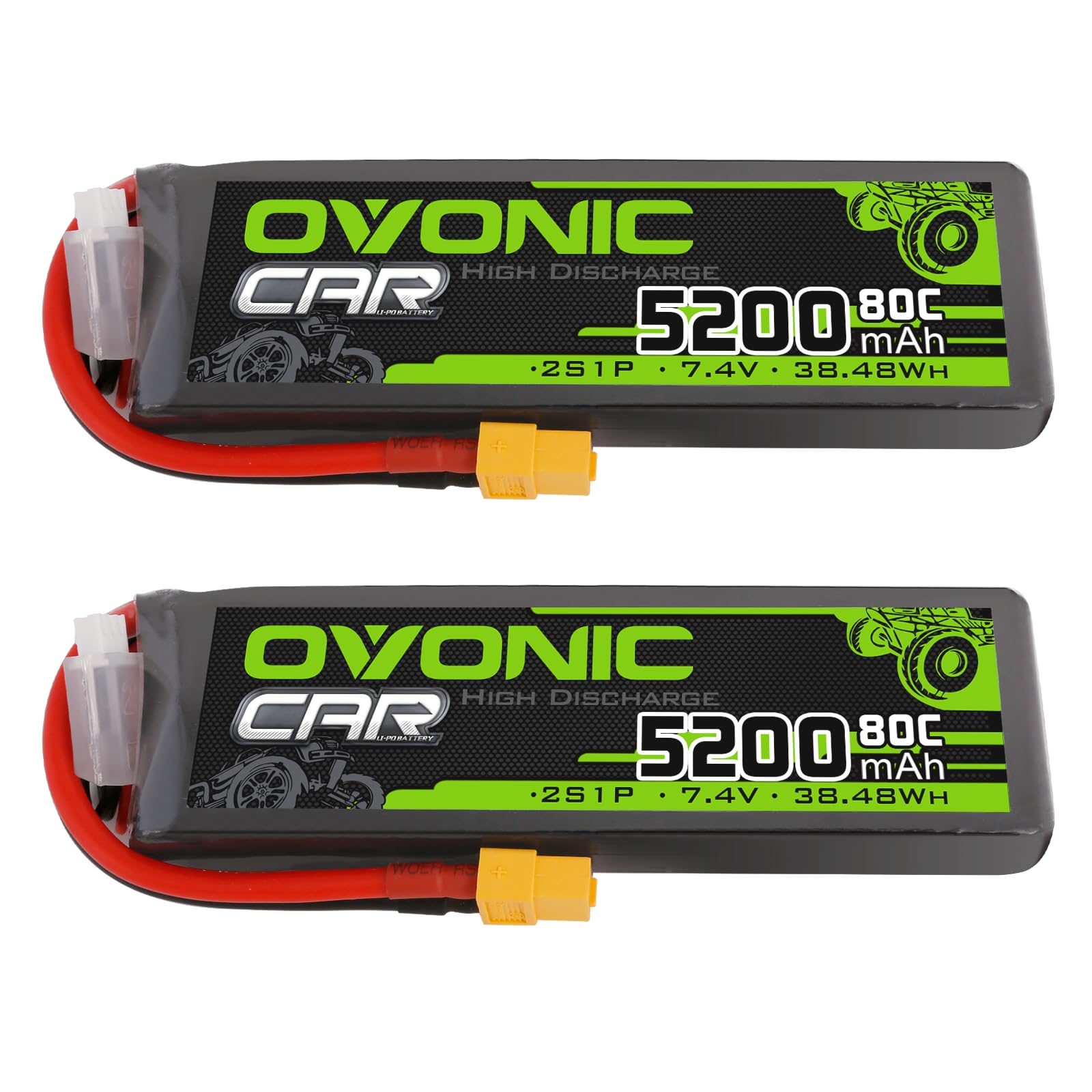 OVONIC Lipo Battery 2S 5200mAh Battery 7.4V 80C Battery with XT60 Plug Soft Case for 1/8 1/10 RC Vehicles Car Slash RC Buggy Tru