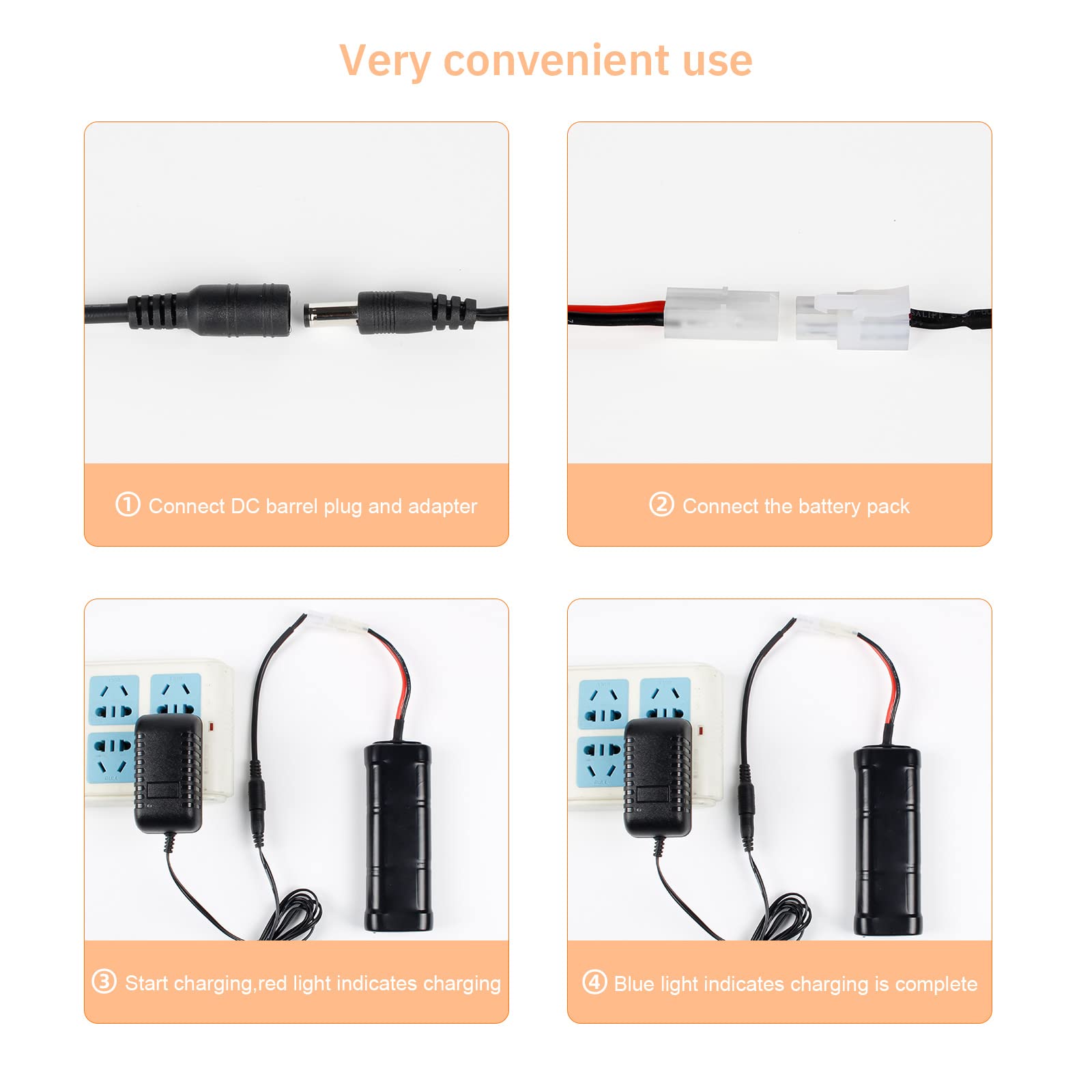 RC Battery Charger for 4.8V 7.2V 8.4V 9.6V NiMH/NiCD Battery Pack, Airsoft Battery Charger for Traxxas Battery Charger for 2.4V-