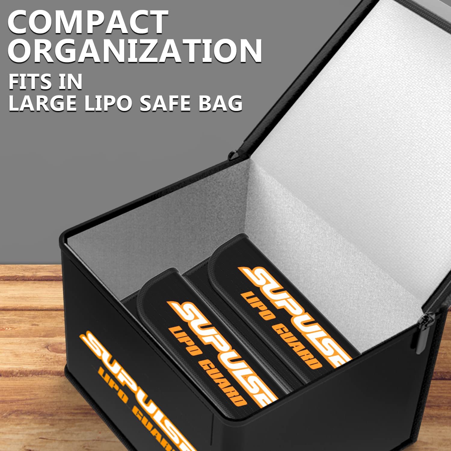 - Q: How many batteries can the SUPULSE Lipo Safe Bag hold? A: This bag is designed to hold up to four 2200 mAh batteries while they are charging, making it convenient for multi-charger setups.