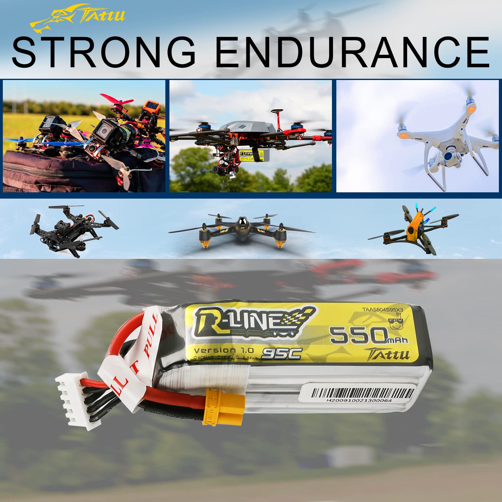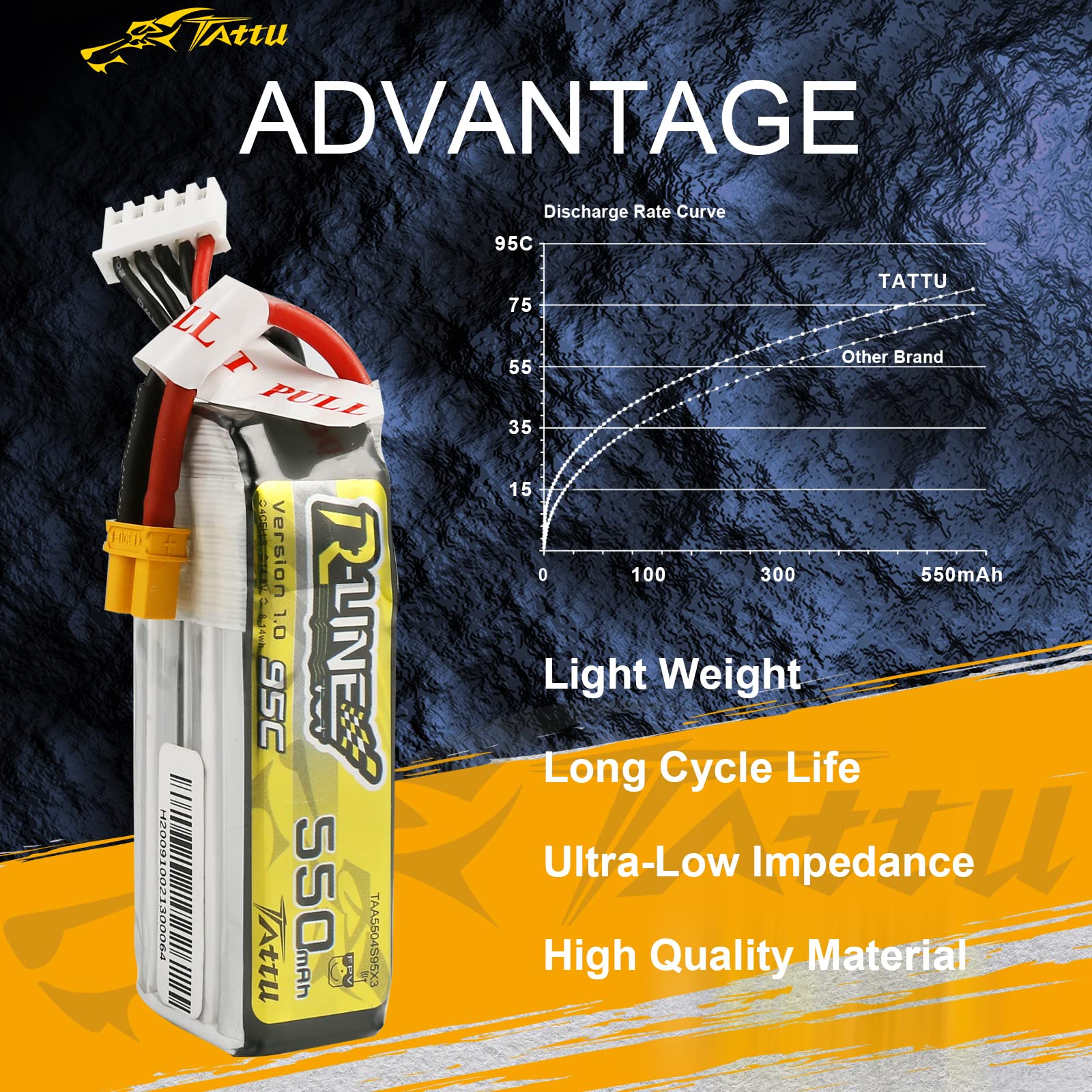 - Q: What makes the TATTU R-Line series stand out compared to other batteries? A: The TATTU R-Line series features superior stacking technology, higher capacity, lower internal resistance, and lower landing temperatures, making it more powerful than standard graphene batteries.
