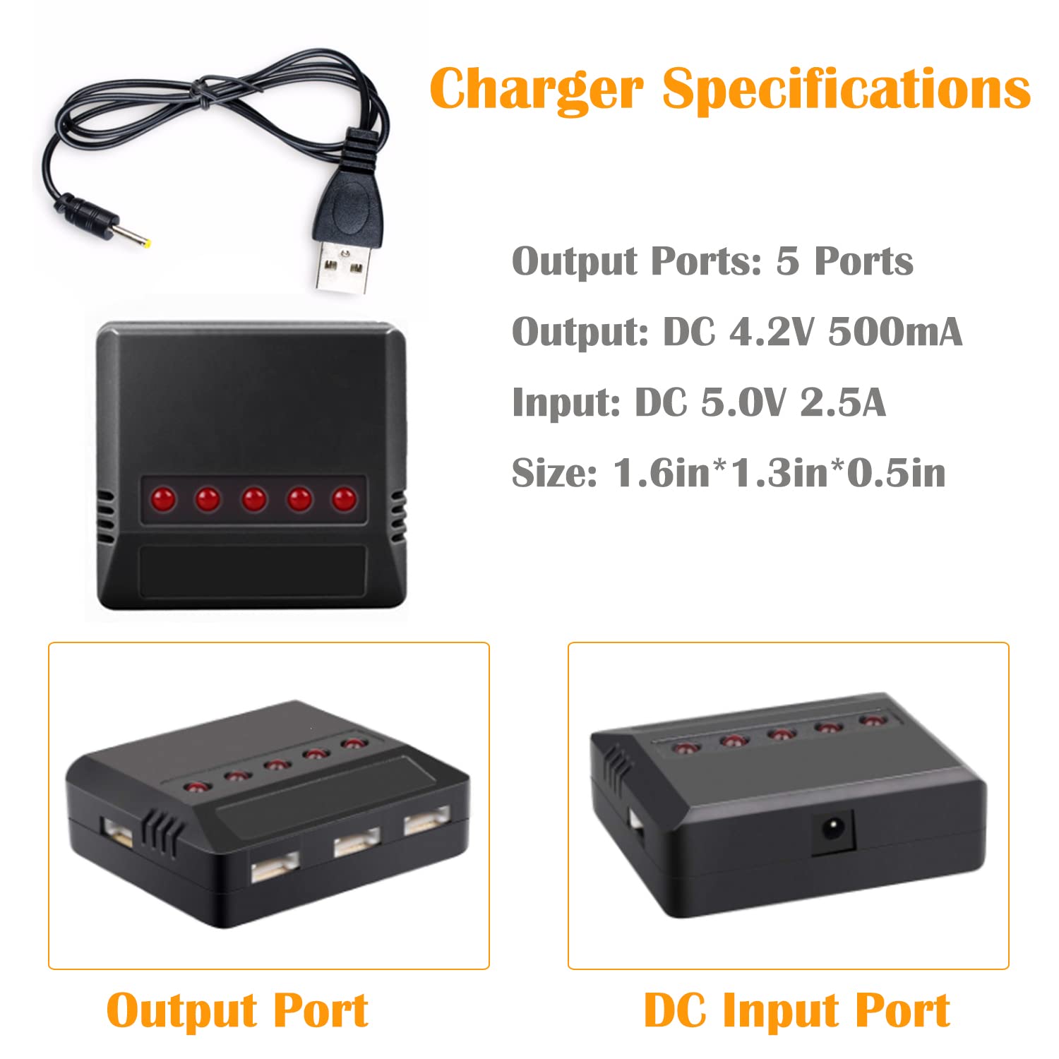 VICMILE 3.7V Lipo Battery 450mAh 25C RC Drone Batteries with 5-in-1 Charger Molex Plug Compatible with Most SYMA and Holystone R