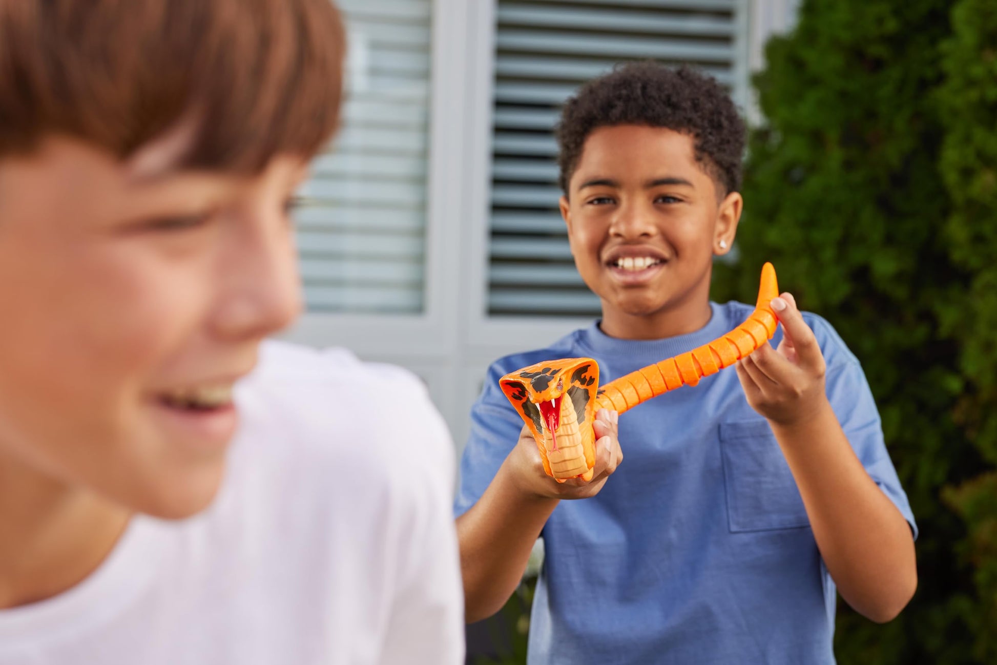 Unleash the thrill with the Robo Alive King Cobra! Measuring a terrifying 17.52 inches (44.5 cm) from tongue to tail. Featuring smart movement technology, it has realistic tongue-flicking movements and slithers across the floor, hunting its prey-watch out, it could be you! Perfect for epic pranks, hide it under the dining table or sneak it into a friends backpack for blood-curdling screams. With ultra-realistic snakeskin, this King Cobra looks as frightening as the real thing. Dare to pick it up and collect the entire Reptile Collection for an unforgettable adventure!