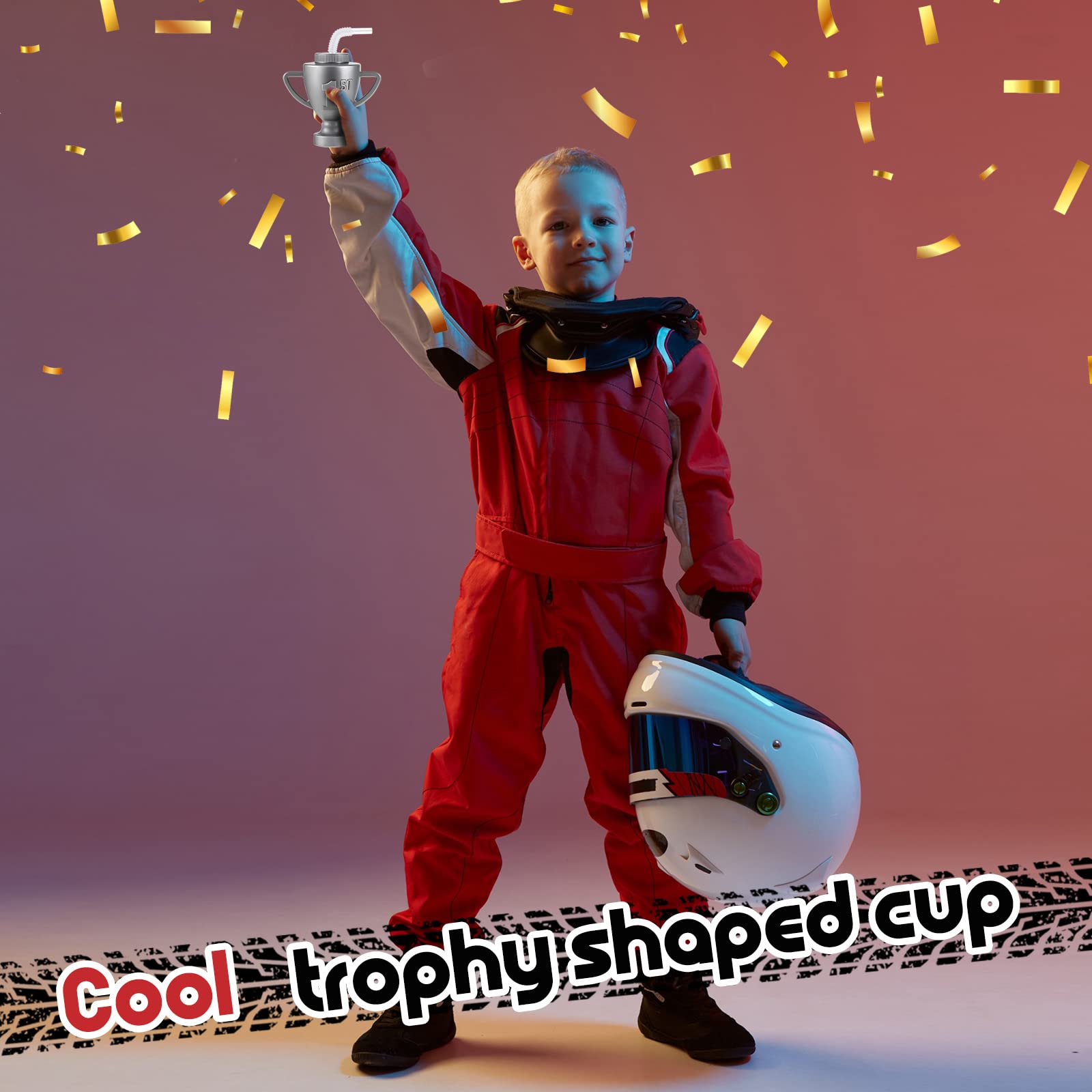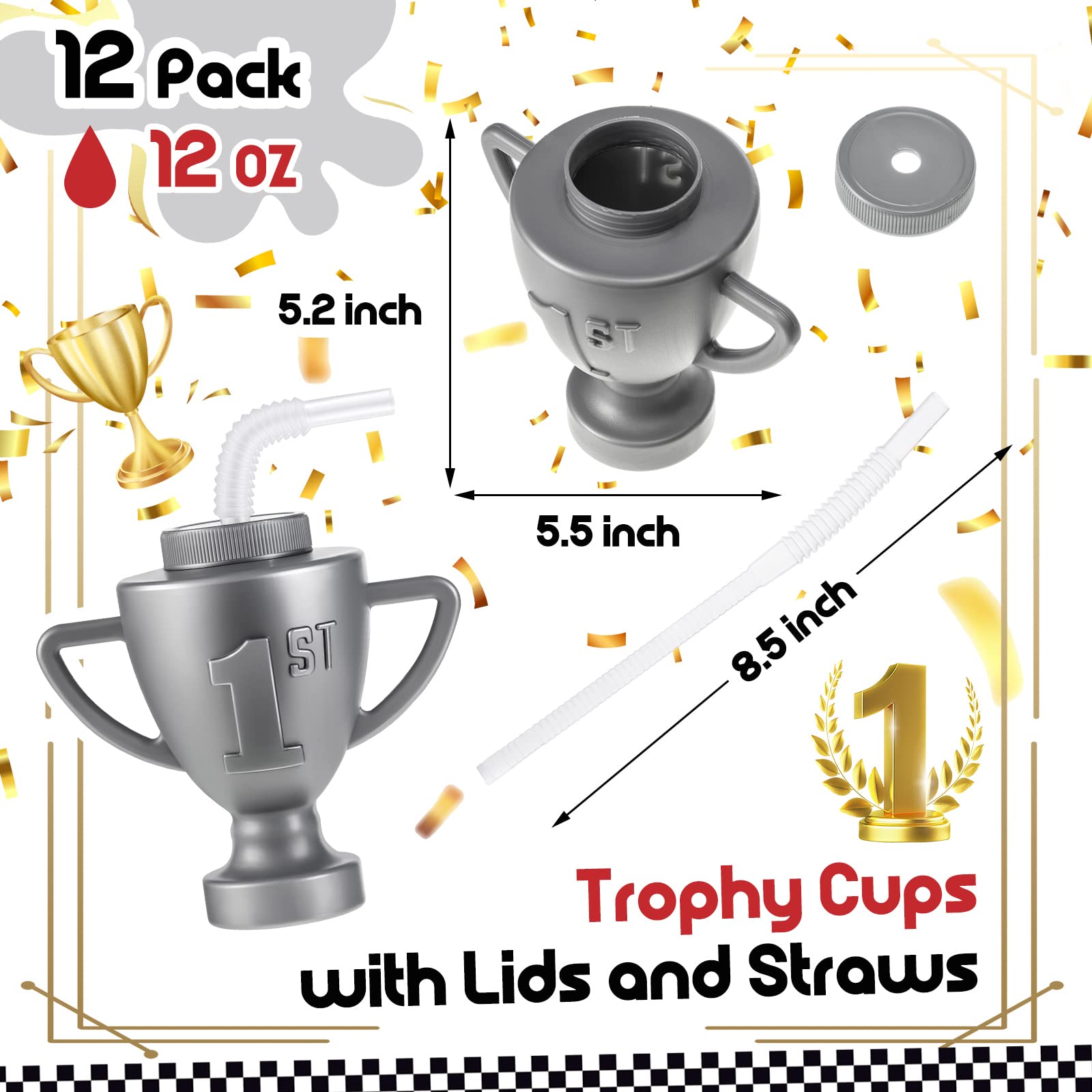 Features: Our trophies party favors are ideal for you to send to your family members, friends, colleagues and more. They will feel your concern and love, and your relationship will be improved. These kids plastic cups with lids and straws have a delicate design, stylish appearance, with exquisite craftsmanship and a wide range of usages, charming and practical. Specifications: Material: plastic Main color: silver Size: as pictures shown Capacity: approx. 12 oz Package includes: 12 x Race car trophy cup with straws and lids Notes: Manual measurement, please allow slight errors on size. The color may exist a slight difference due to different screen displays.