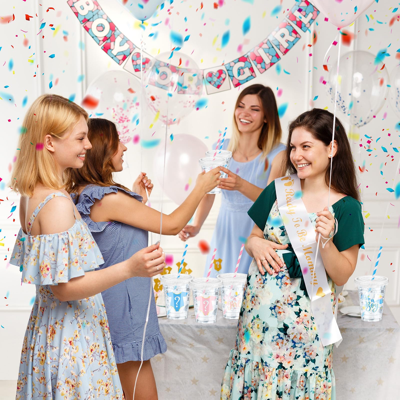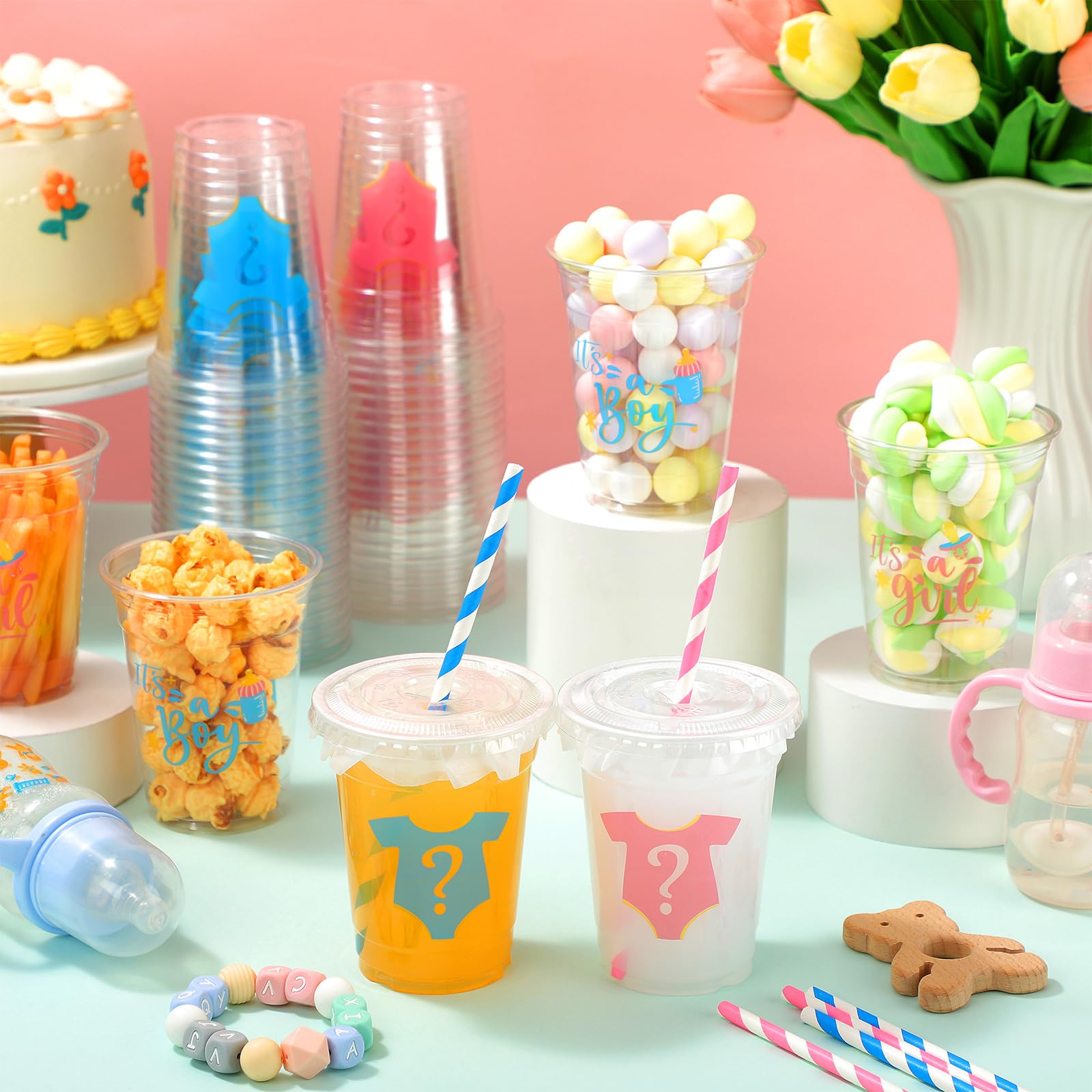 Foldtier 50 Pcs Gender Reveal Party Plastic Cup 12 Oz Gender Reveal Cups Boy Or Girl Thick Clear Cup Lids Straws Gender Reveal P