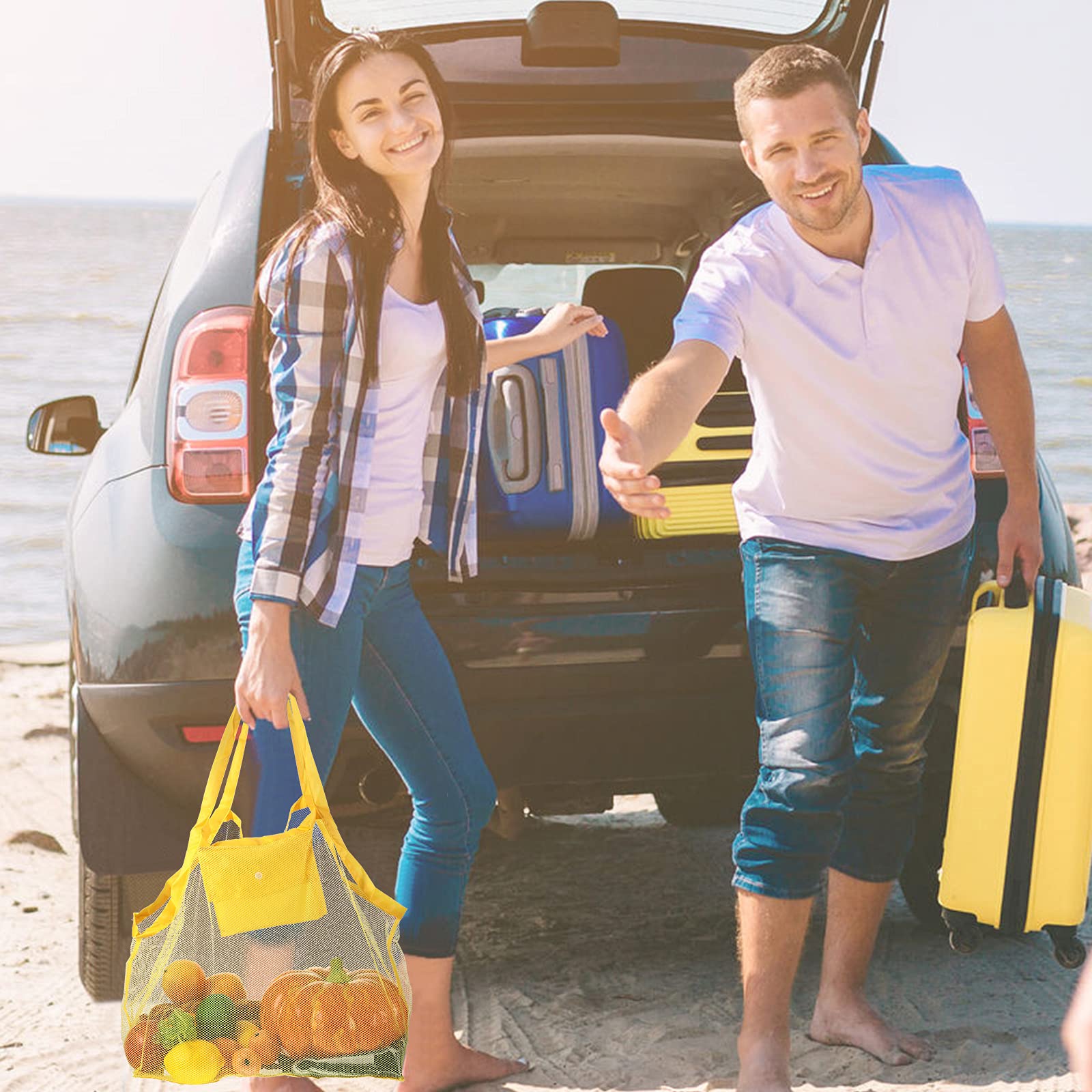 Frienda 6 Pieces Mesh Beach Tote Bag Portable Travel Mesh Bag Large Mesh Beach Bag Toy Organizer Storage Bag Away from Sand for